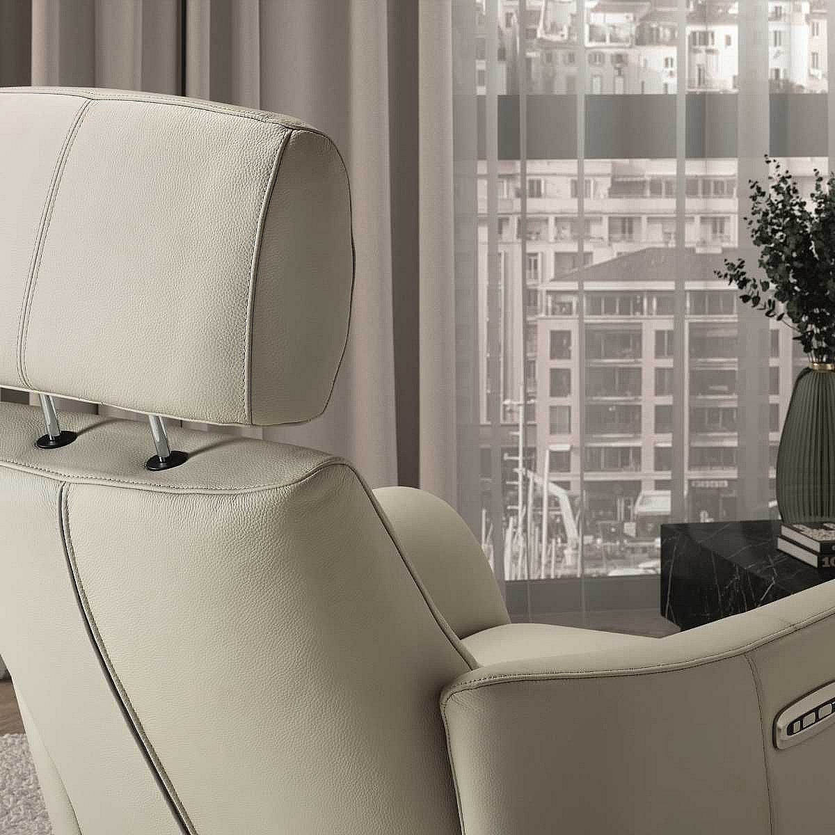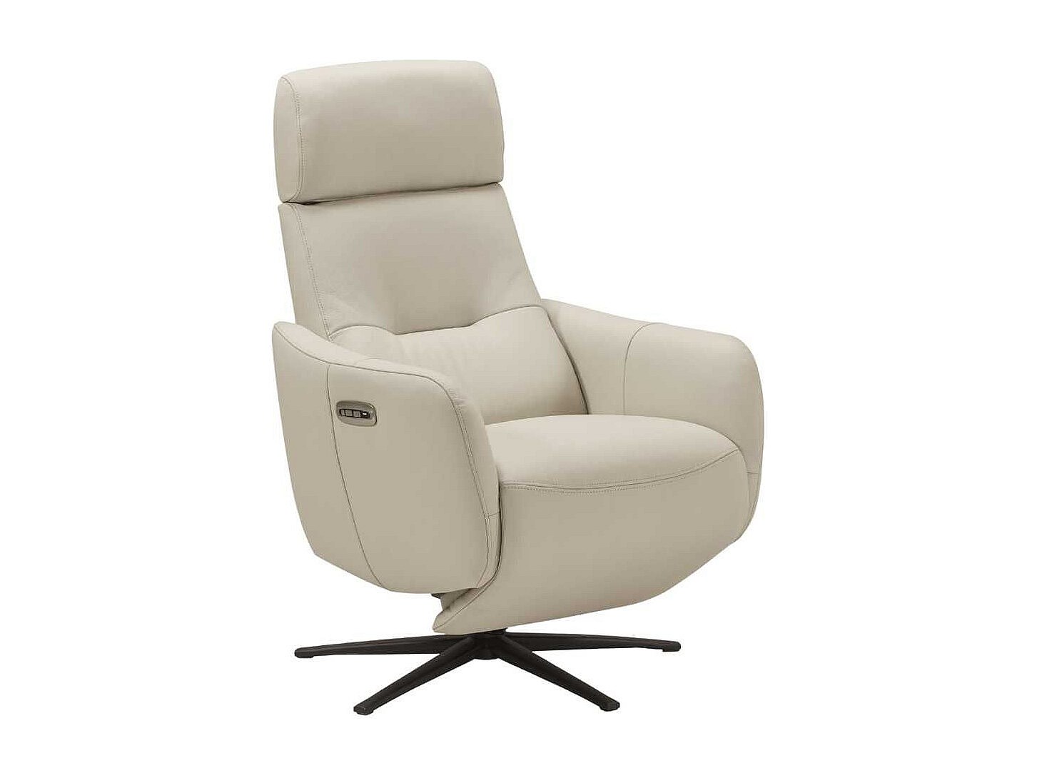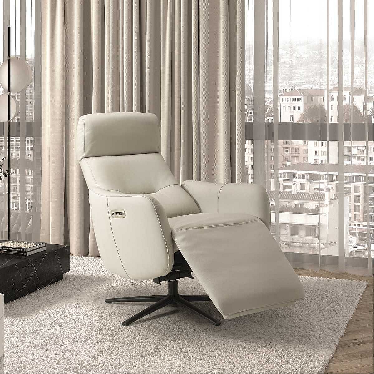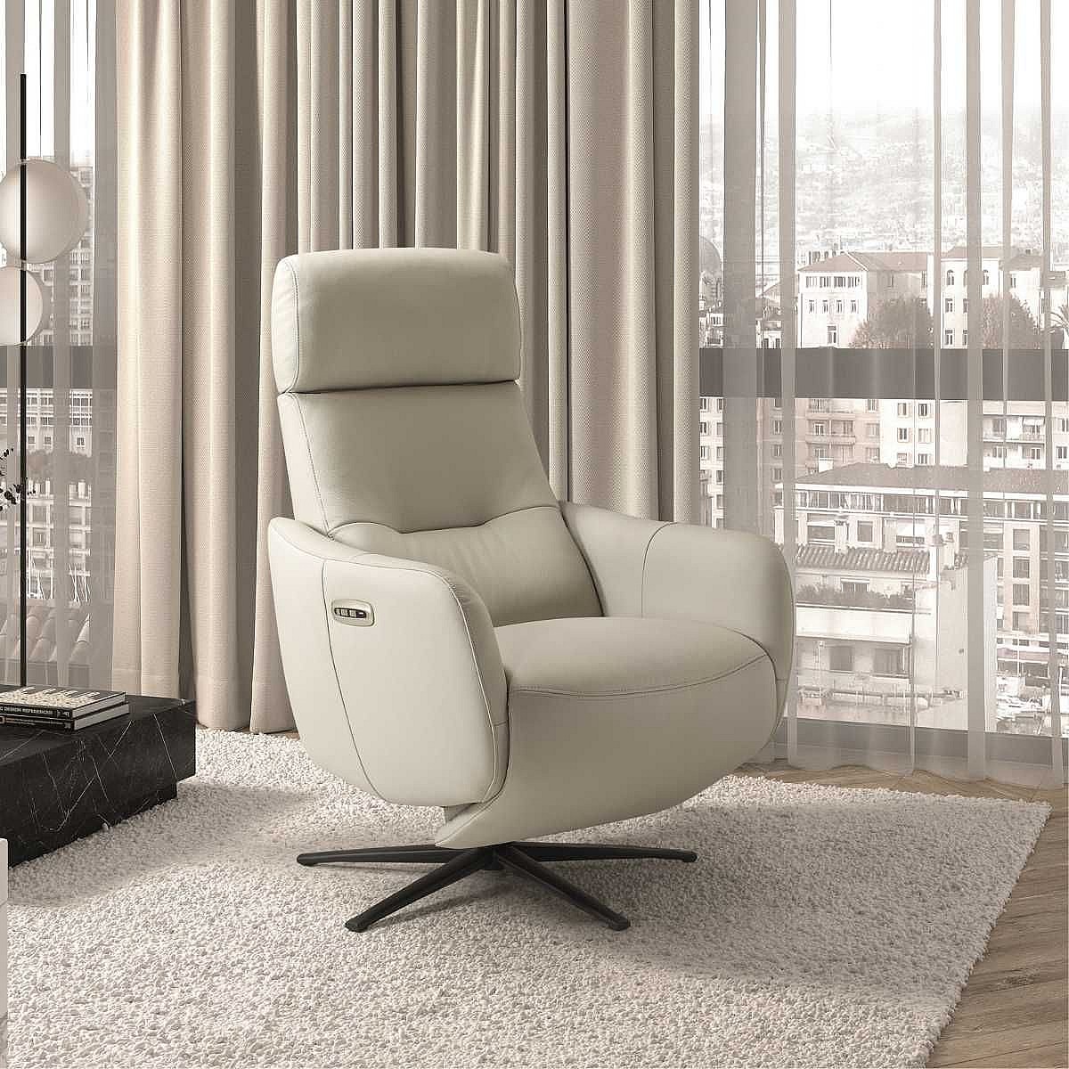 Fauteuil relax électrique pivotant avec têtière manuelle tout cuir gris clair - REANE
