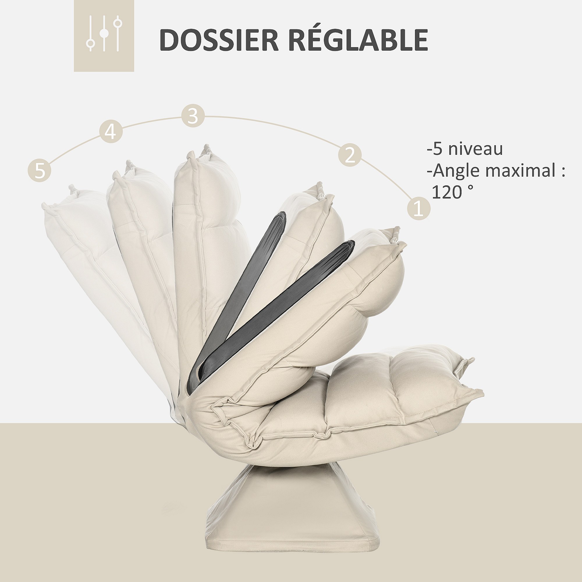 Fauteuil de relaxation de sol beige revêtement en lin rembourrage doux en polyester et structure robuste en acier dossier inclinable en 5 positions