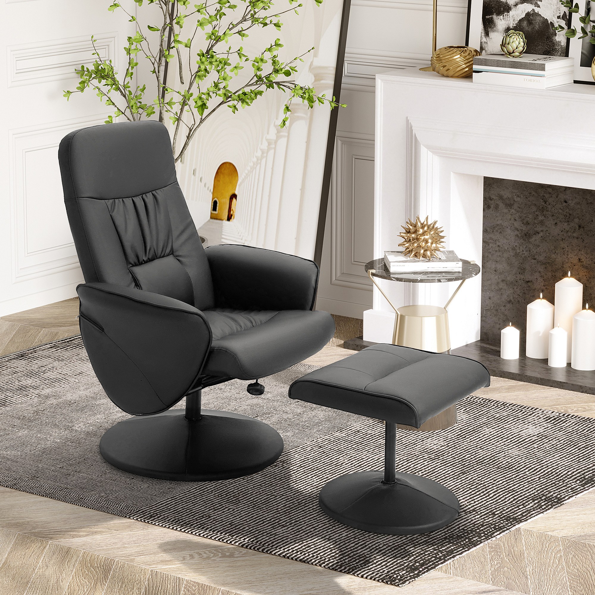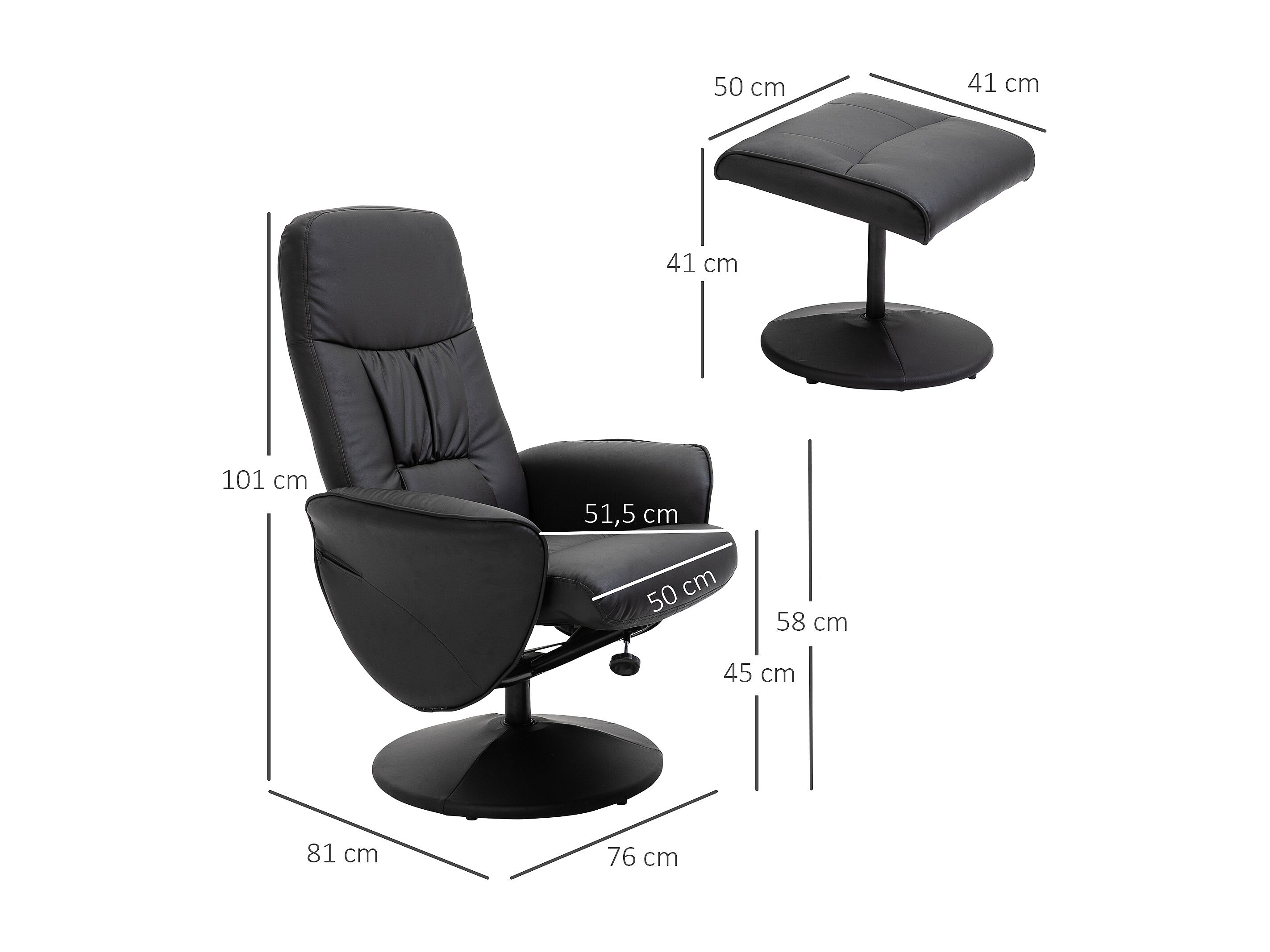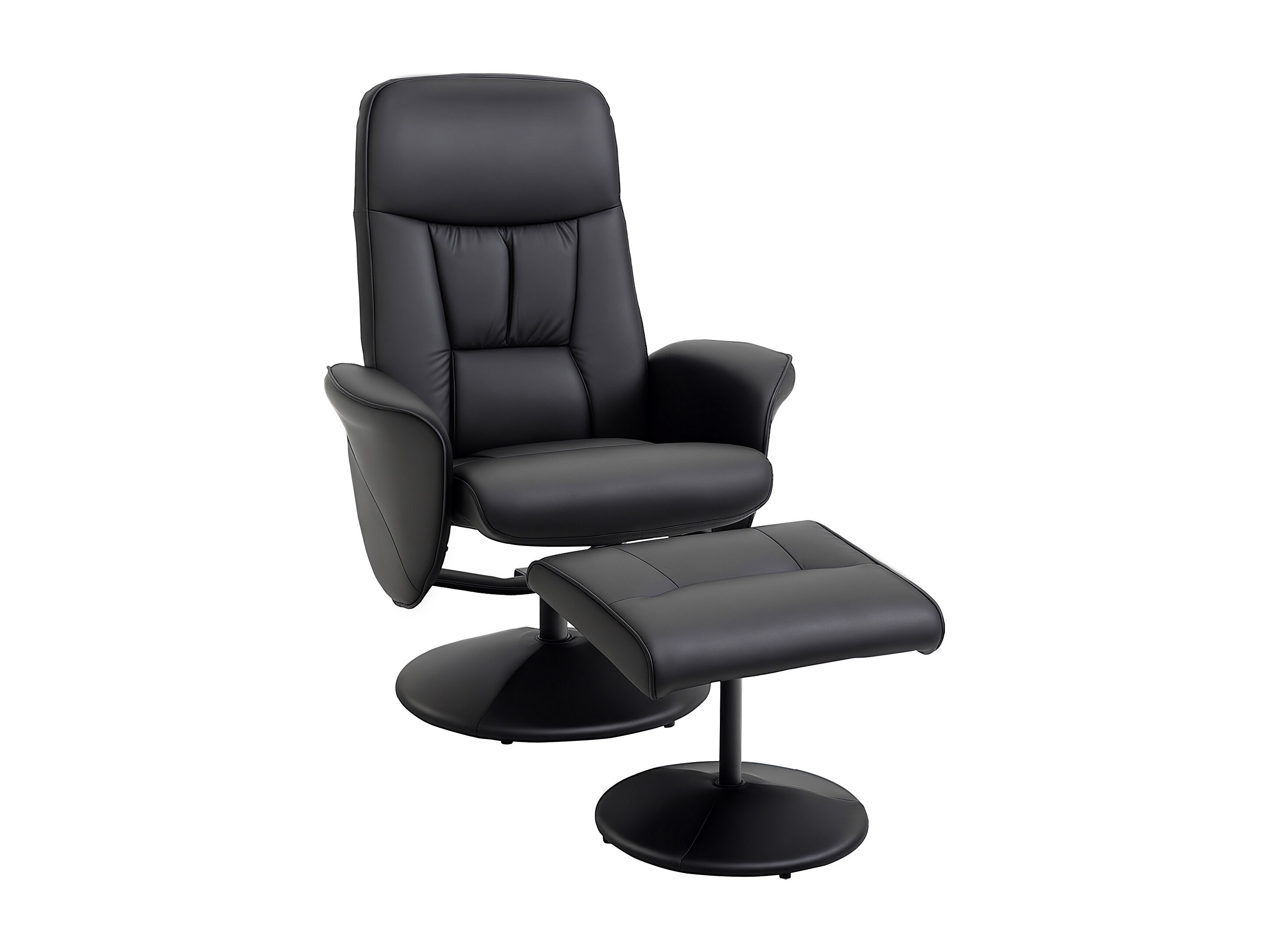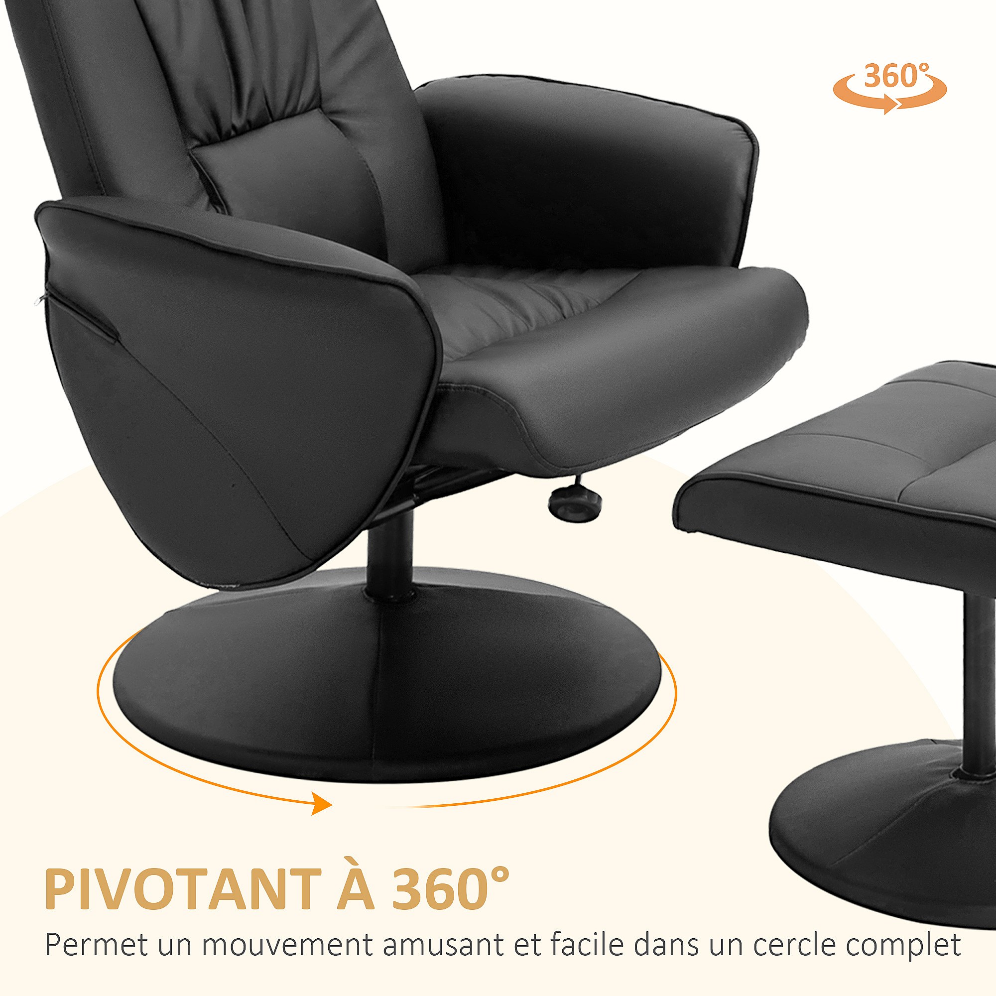 Fauteuil relax inclinable pivotant style contemporain avec repose-pied revêtement synthétique noir