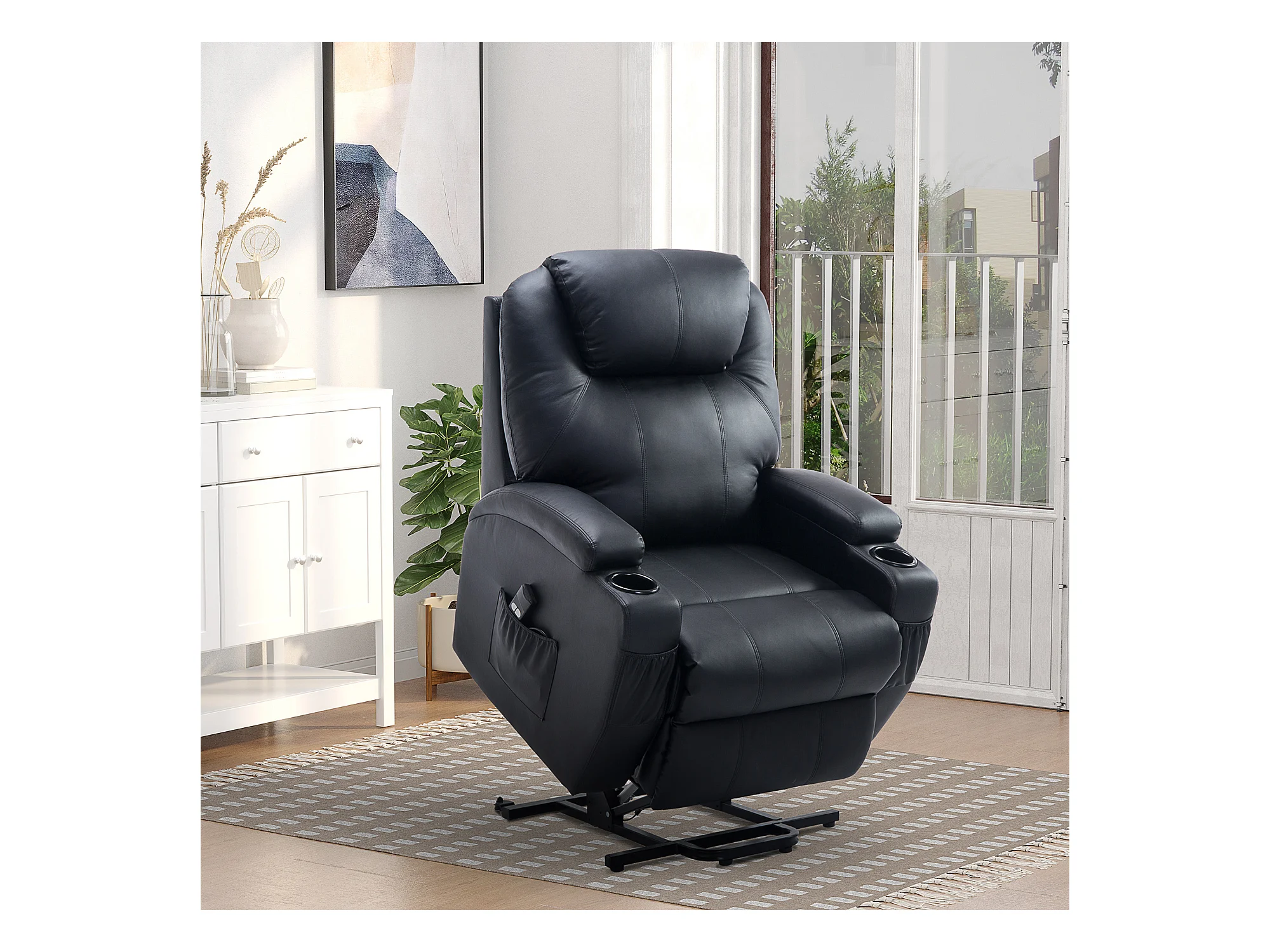 Fauteuil releveur électrique fauteuil de relaxation inclinable repose-pied relevable grand confort télécommande revêtement synthétique noir