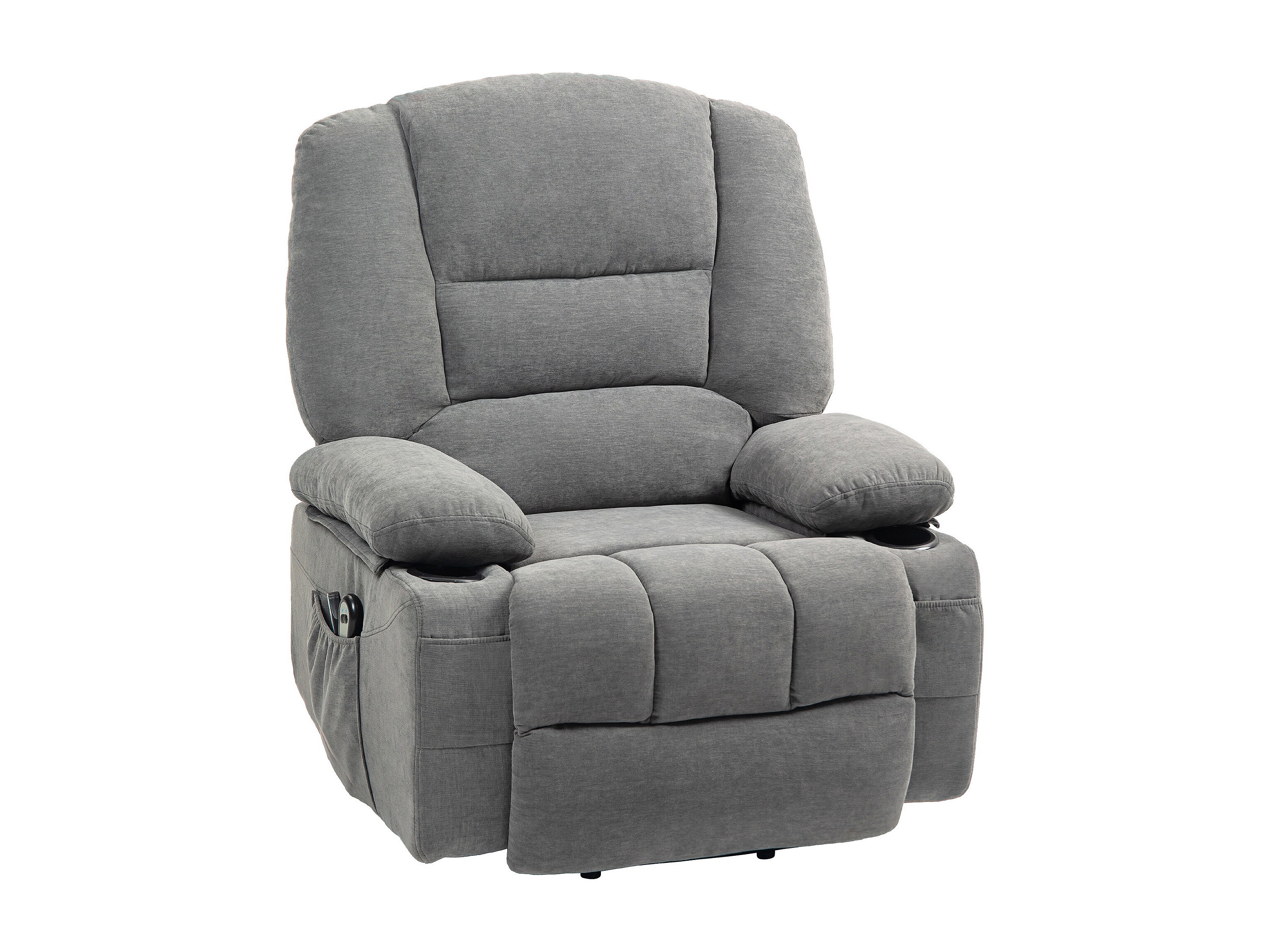 Fauteuil releveur électrique massant chauffant inclinable - repose-pied intégré, 2 télécommandes - tissu gris