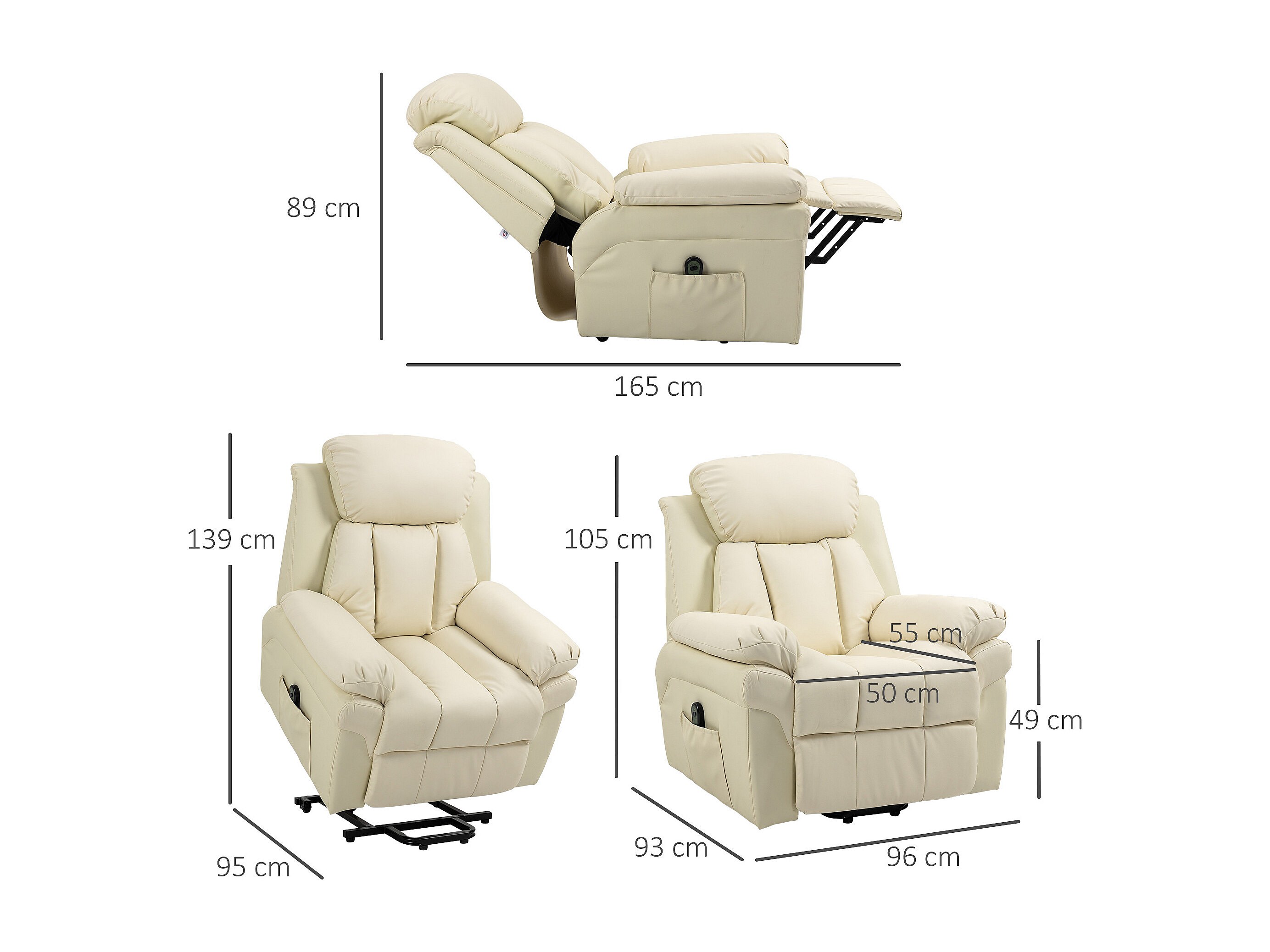 Fauteuil releveur inclinable avec repose-pied ajustable - fauteuil de relaxation électrique - revêtement synthétique crème