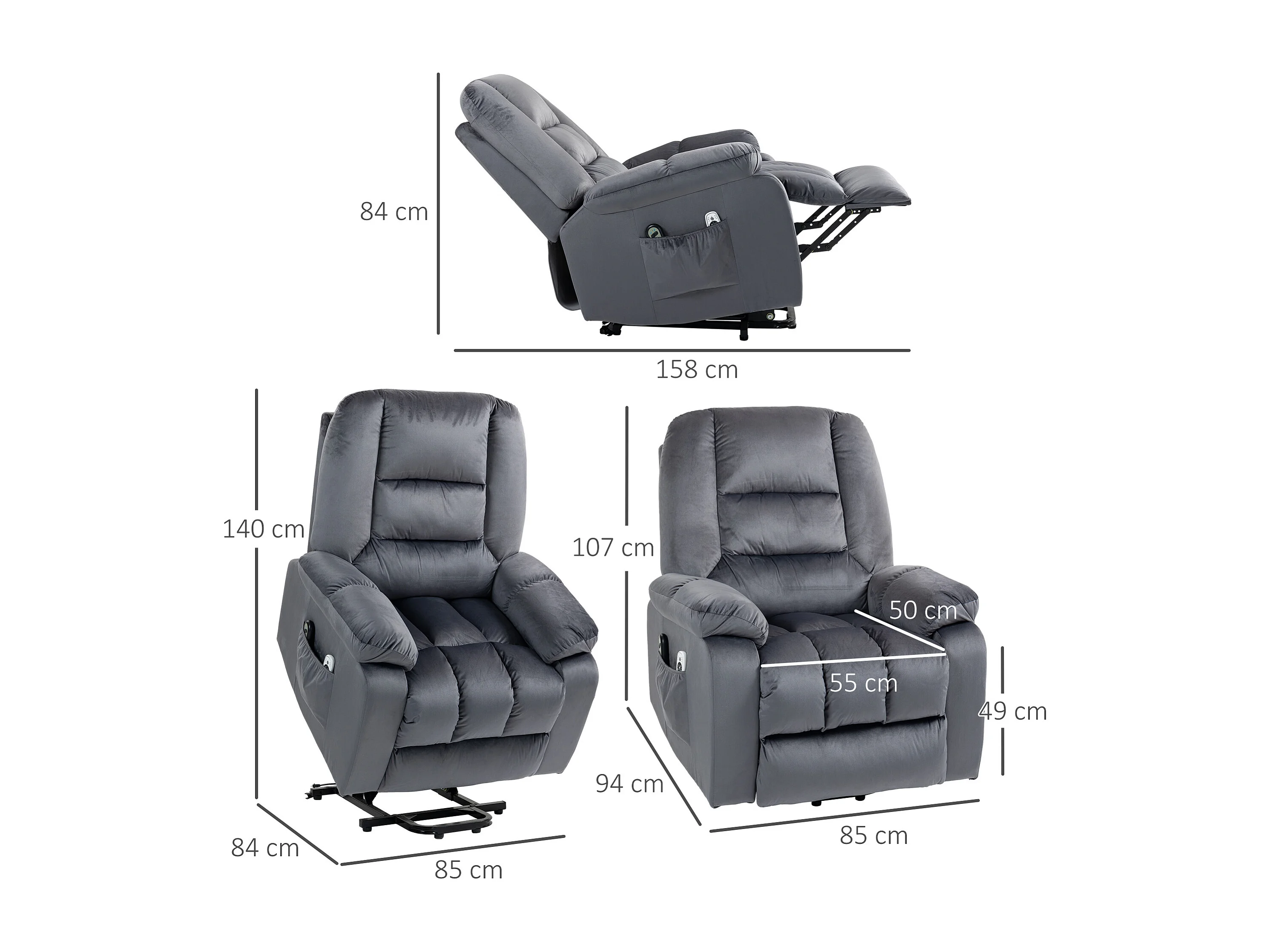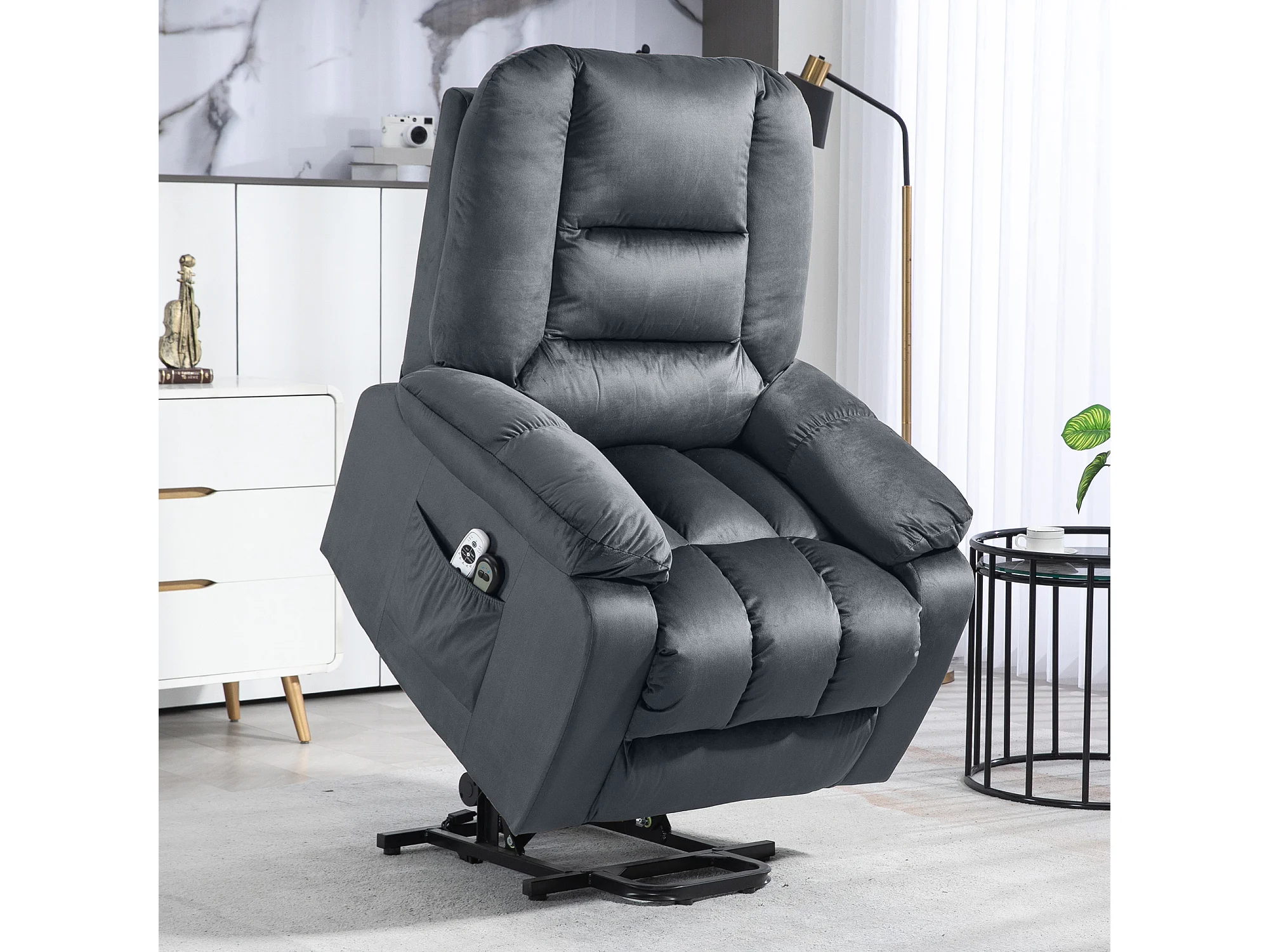 Fauteuil releveur massant chauffant 2 télécommandes velours gris