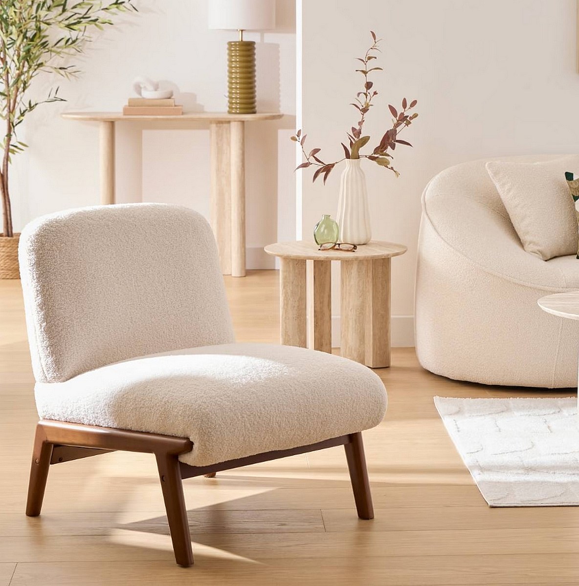 Fauteuil revêtu de tissu bouclette coloris ivoire - Longueur 61,4 x Profondeur 75,5 x Hauteur 76 cm