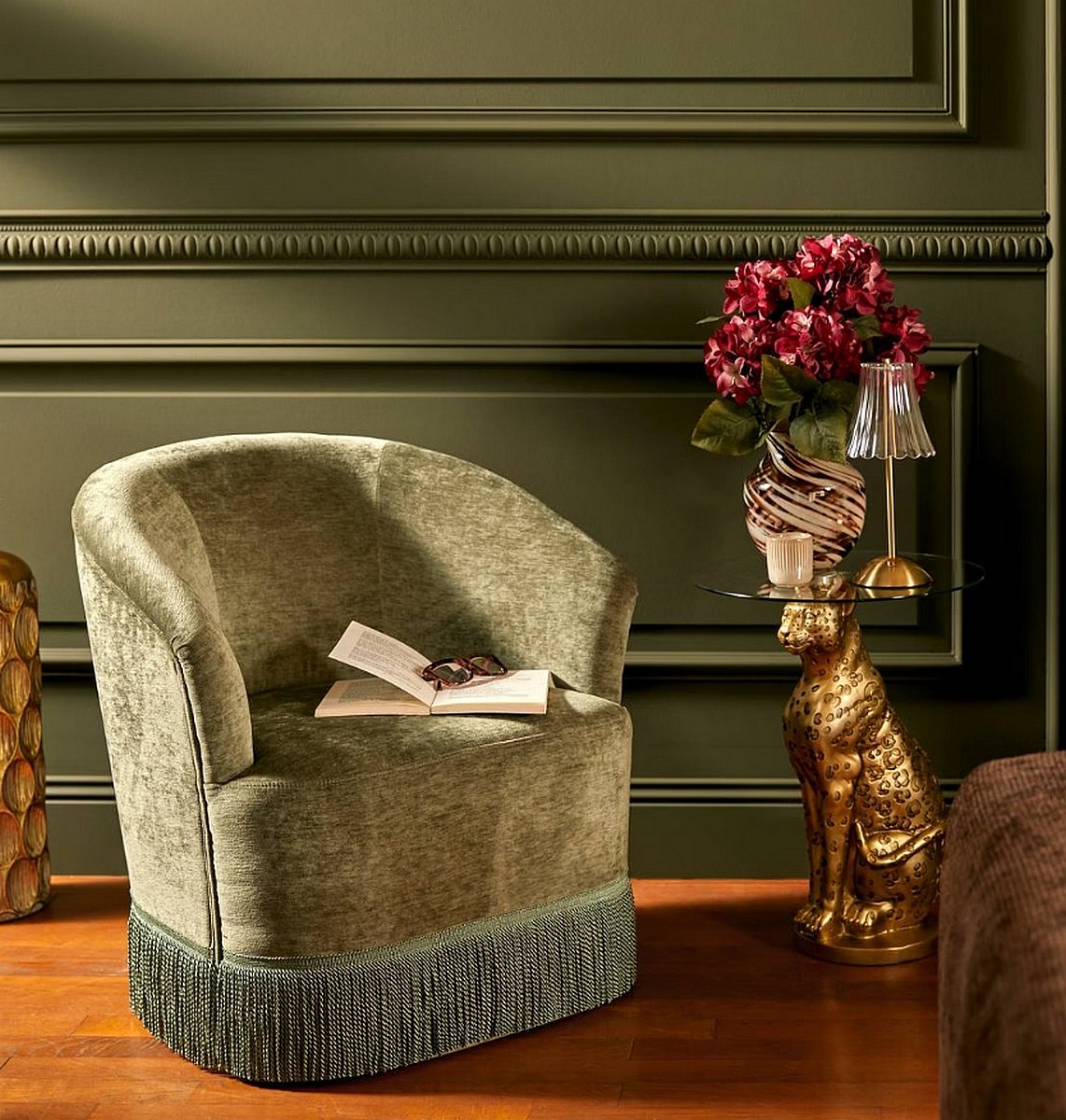 Fauteuil revêtu de tissu effet velours - Longueur 67,5 x Profondeur 60 x Hauteur 71 cm