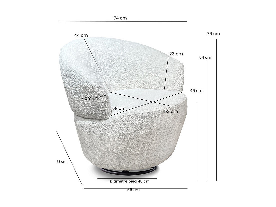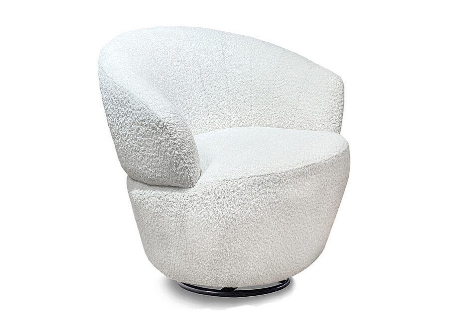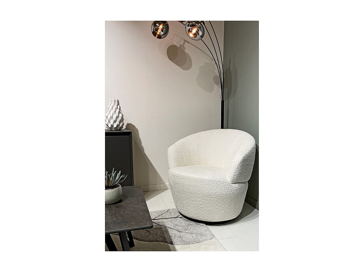 Fauteuil rond pivotant 360° tissu bouclé blanc cassé – COROLLA