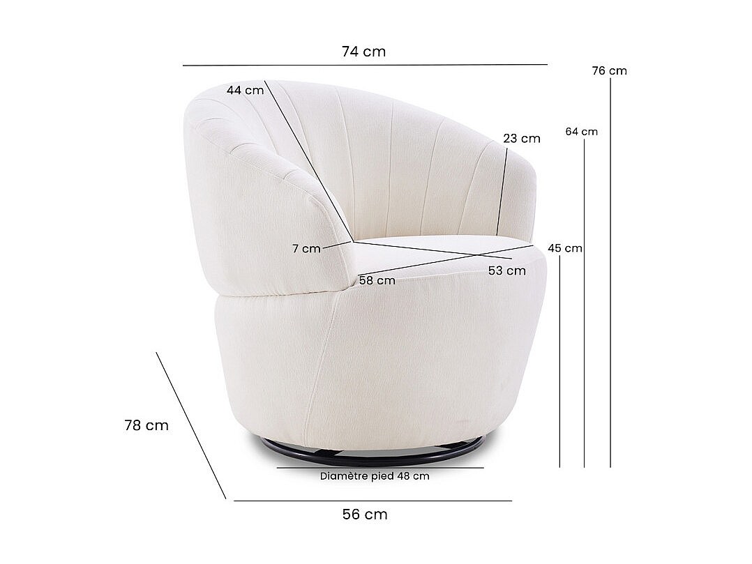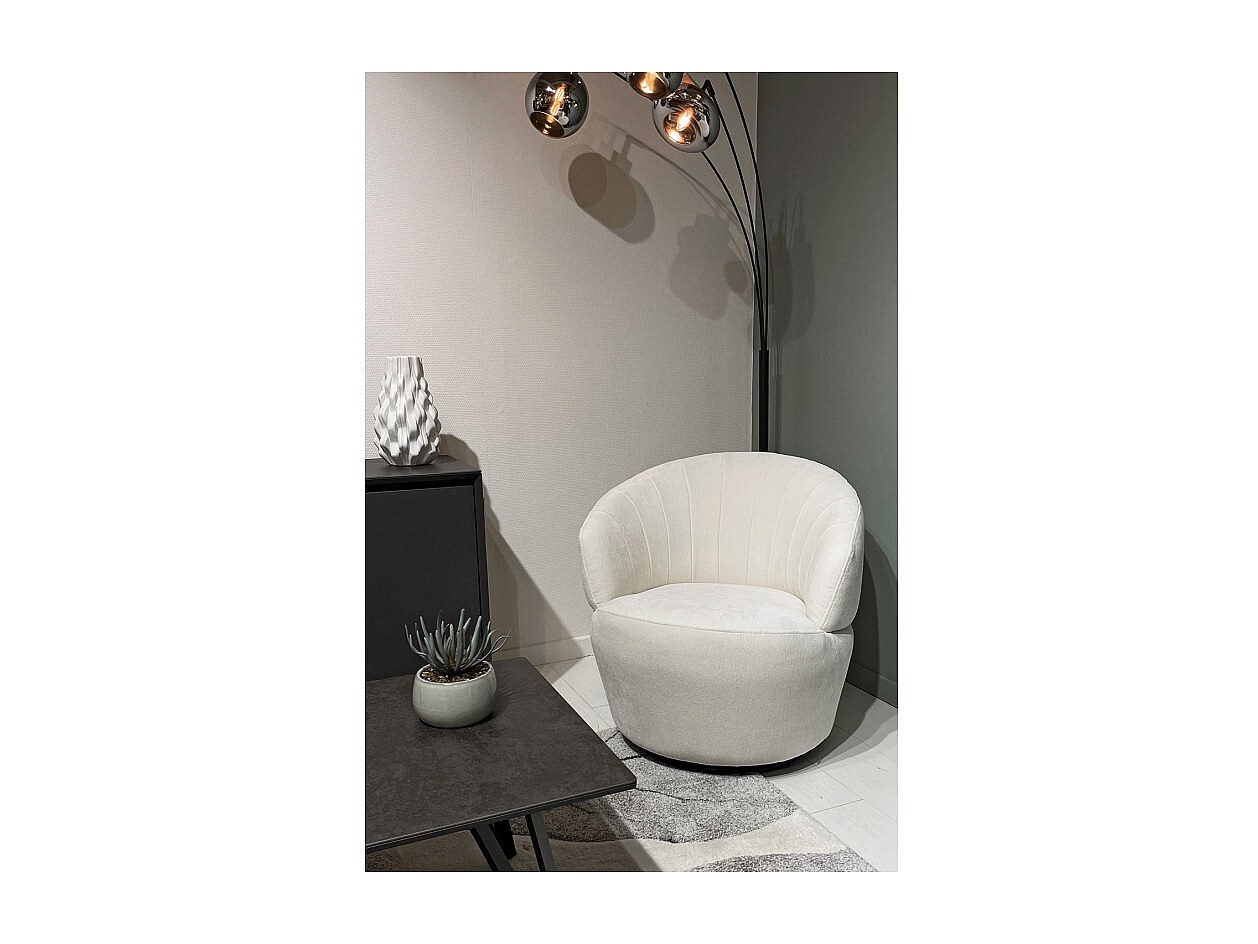 Fauteuil rond pivotant 360° tissu doux microfibre beige – COROLLA