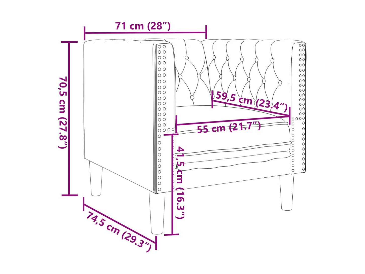 Fauteuil salon | Chaise Confortable | Fauteuil Chesterfield gris foncé velours