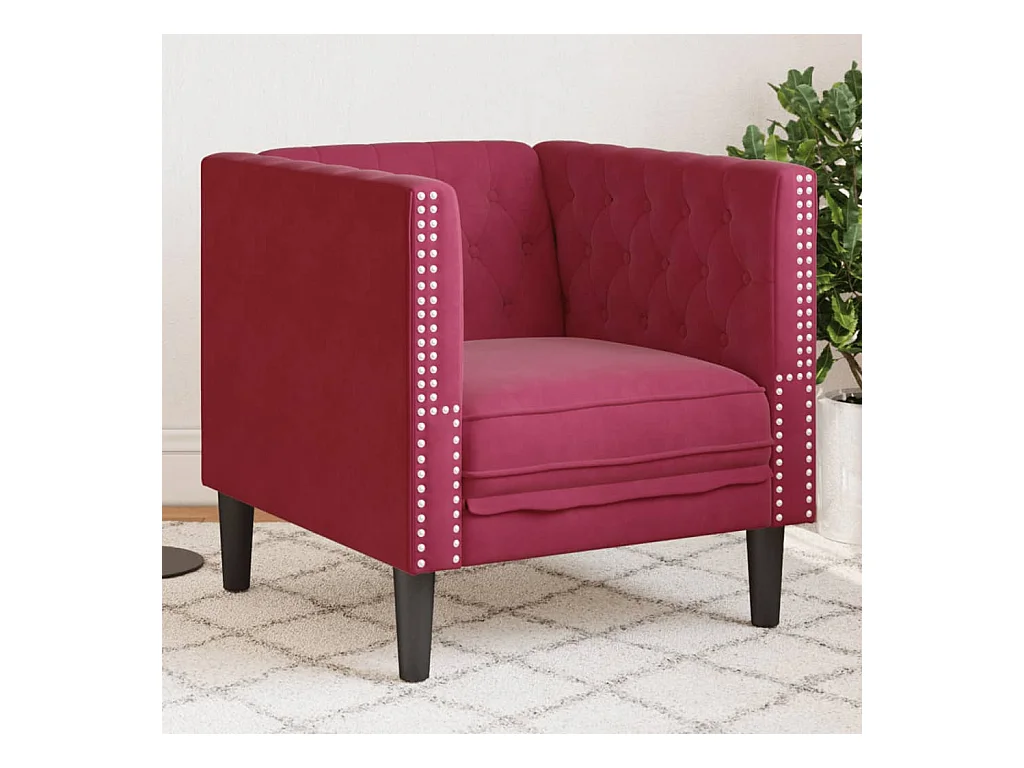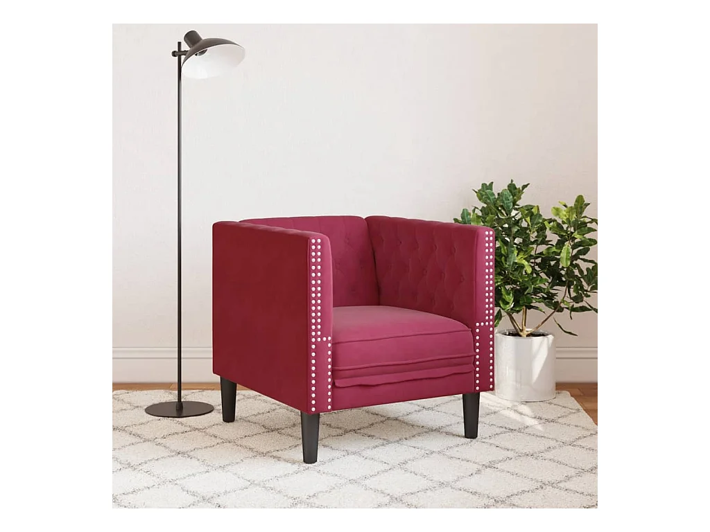 Fauteuil salon | Chaise Confortable | Fauteuil Chesterfield rouge bordeaux velours