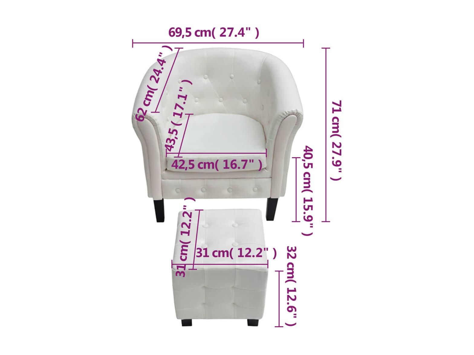 Fauteuil salon-Chaise de relax-Fauteuil avec repose-pied blanc similicuir SHL2242