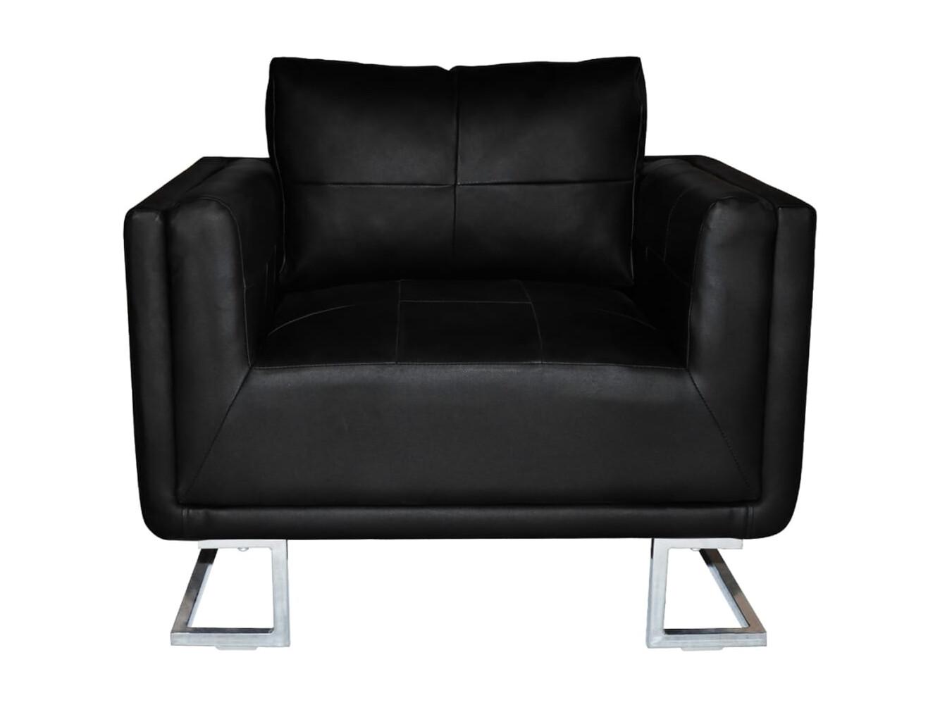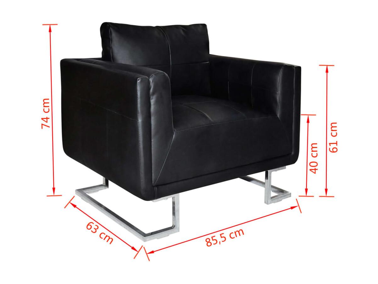Fauteuil salon-Chaise de relax-Fauteuil cube avec pieds chromés Noir Similicuir SHL1208