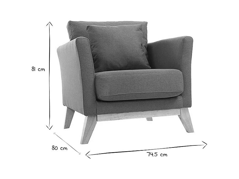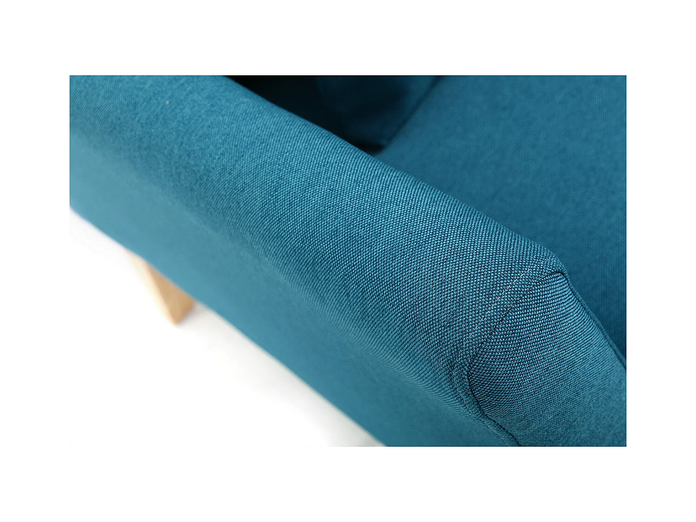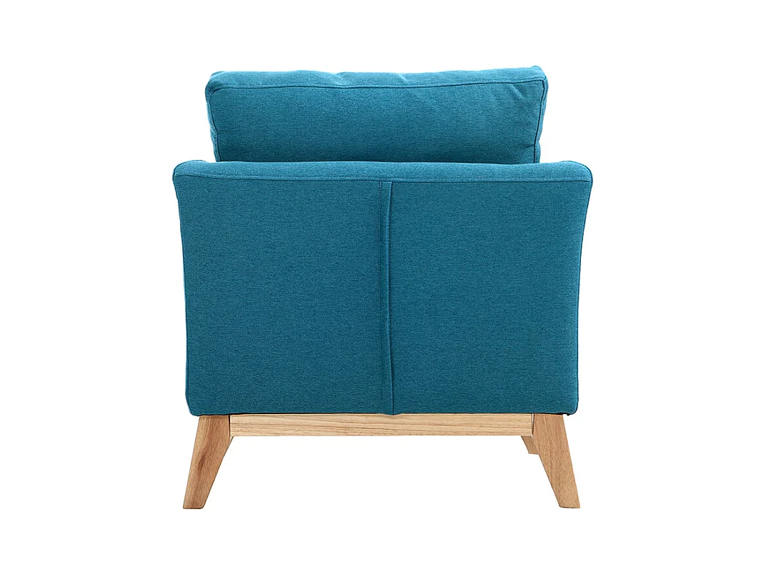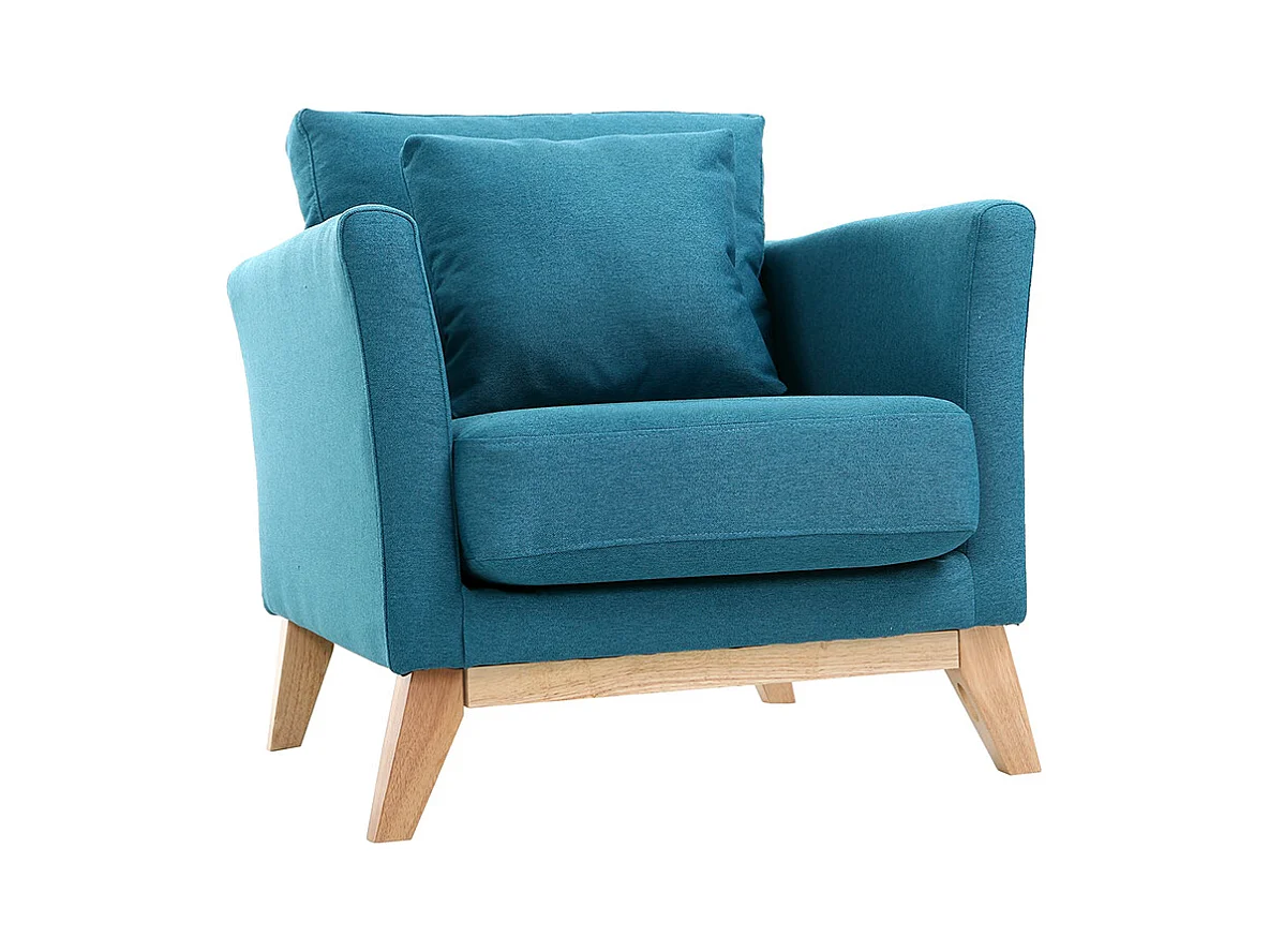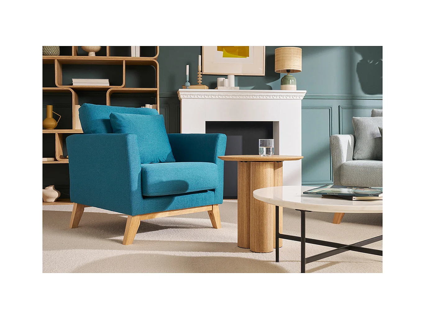 Fauteuil scandinave déhoussable en tissu bleu canard et bois clair OSLO