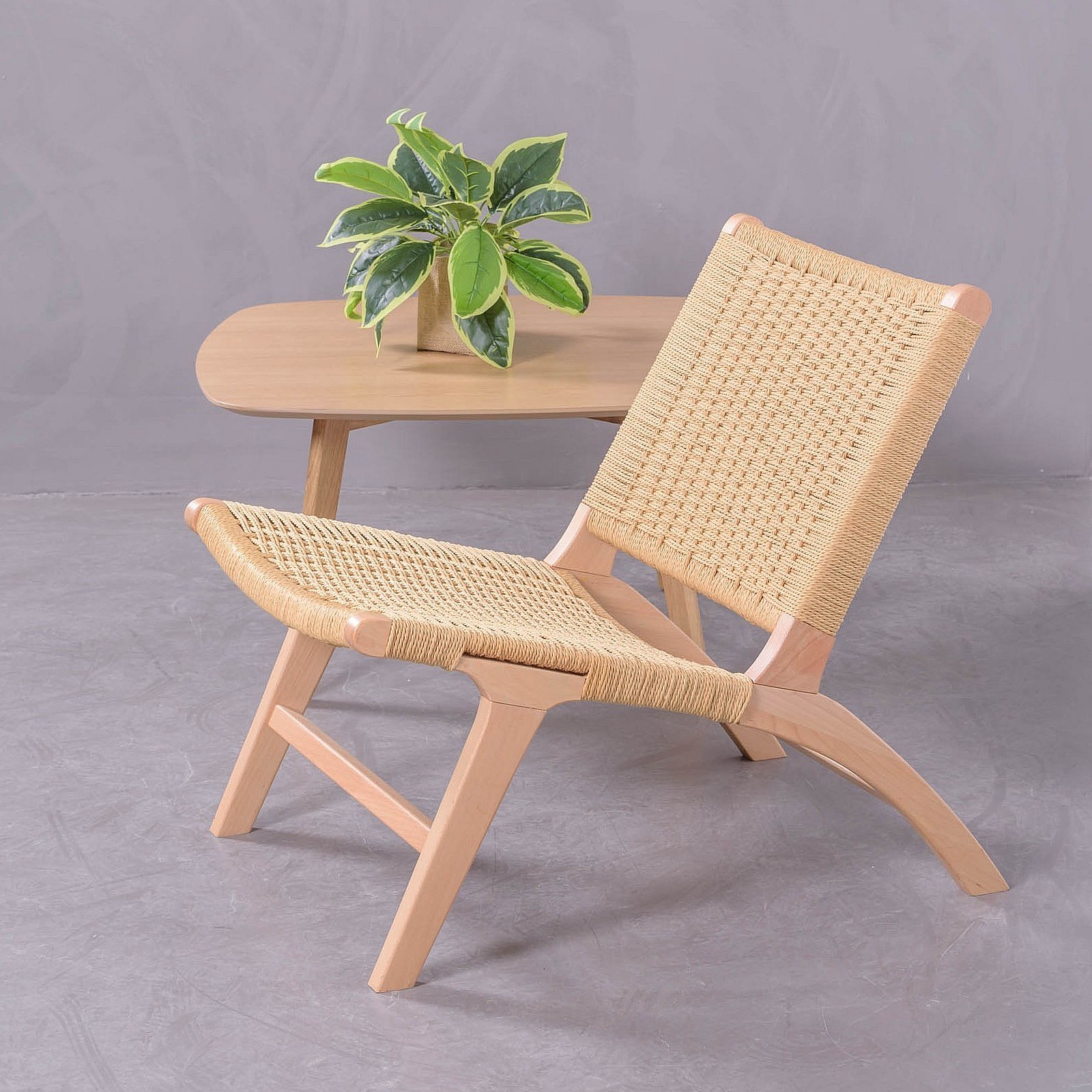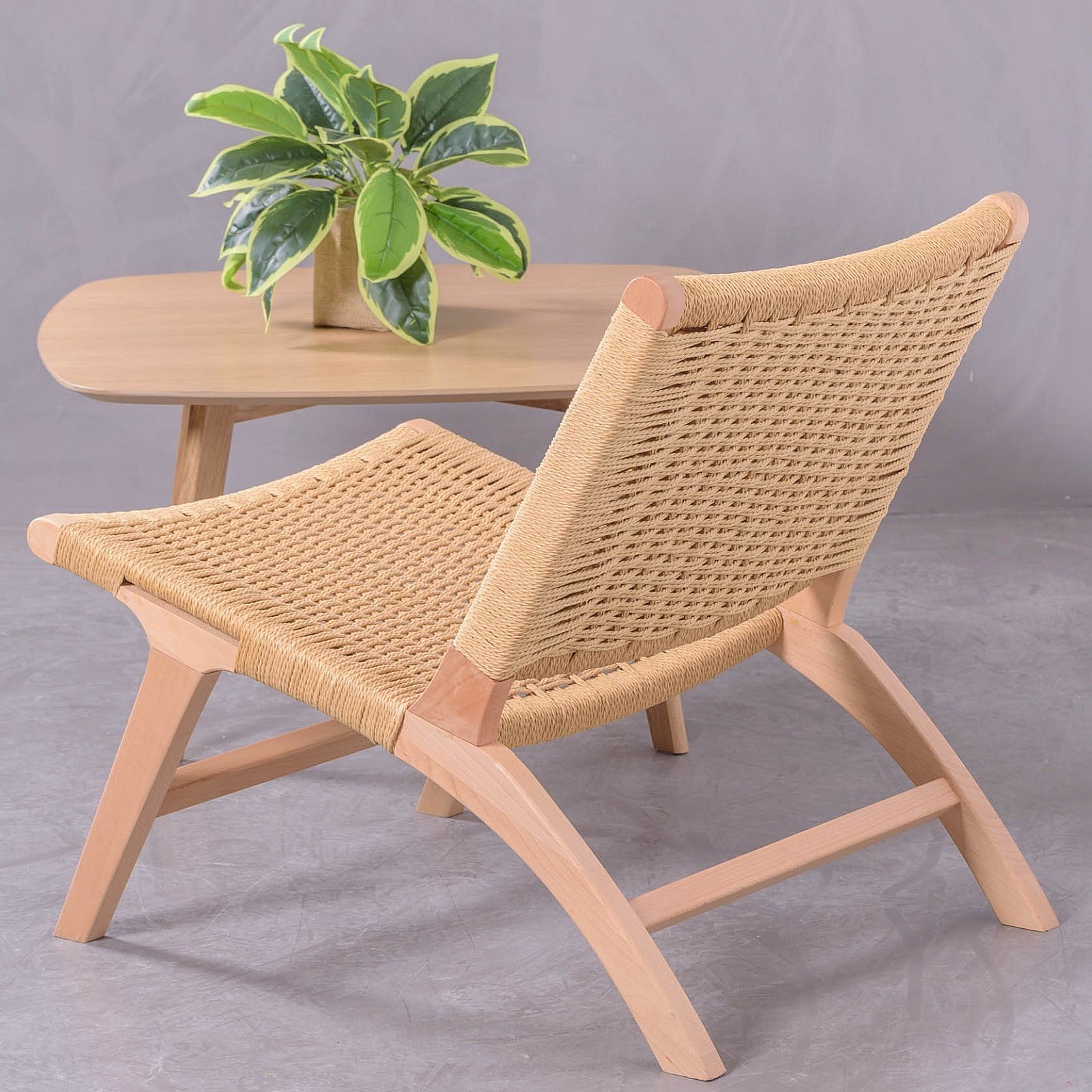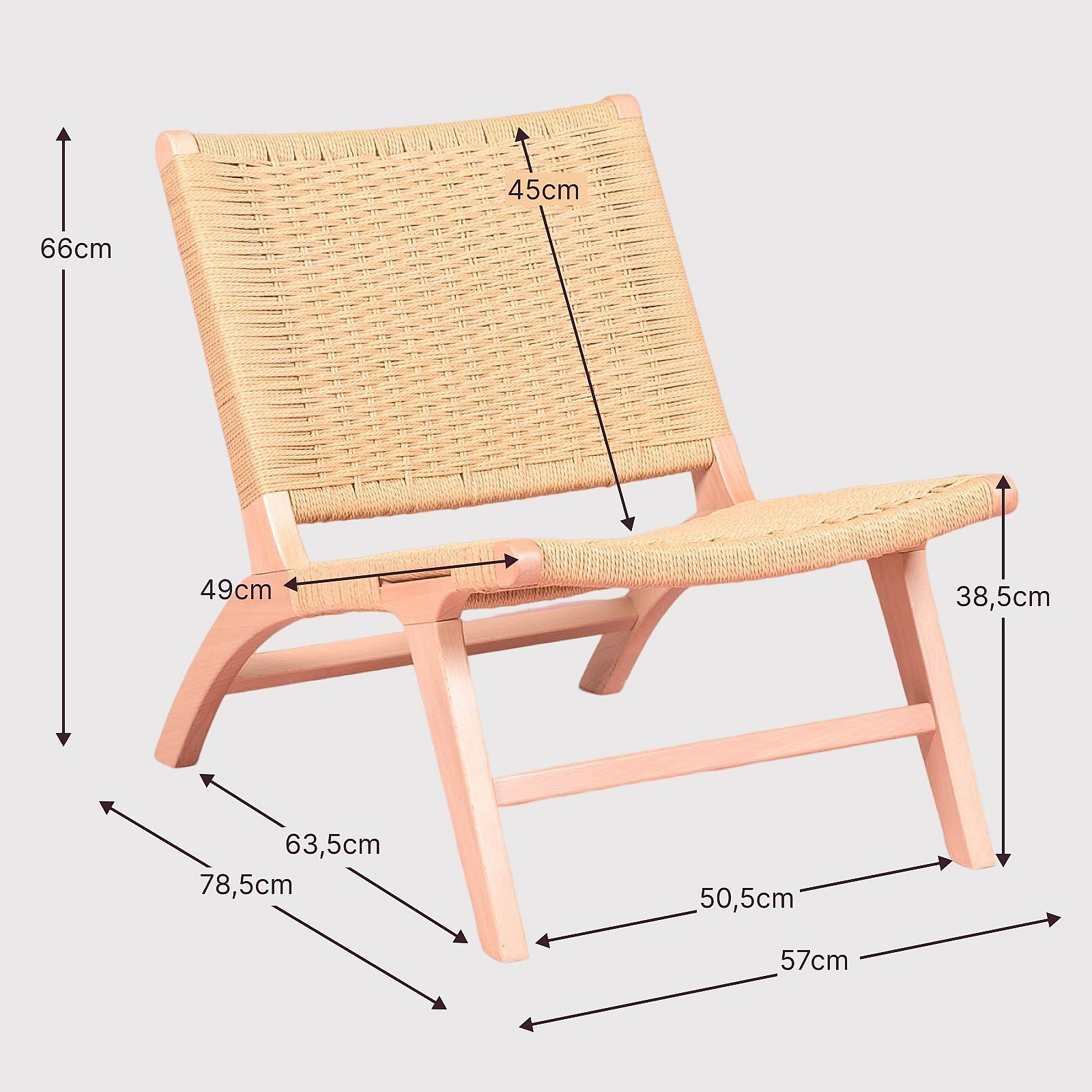 Fauteuil scandinave en bois de hêtre et corde écologique - Liam - Hêtre naturel