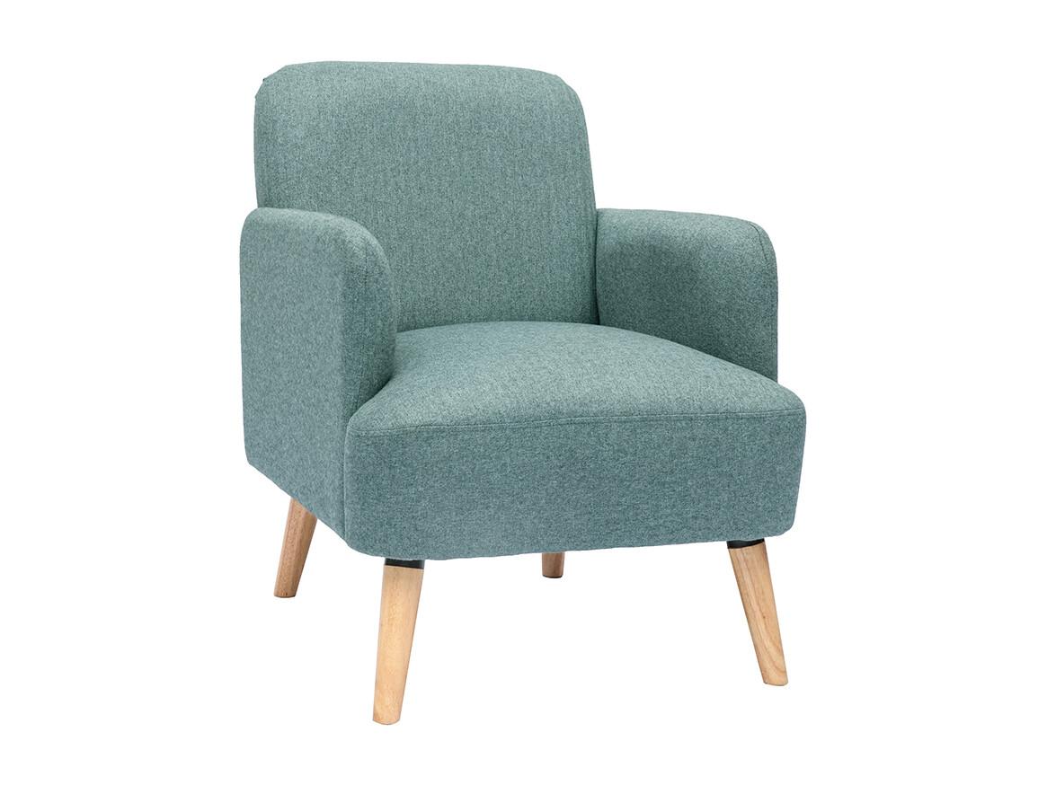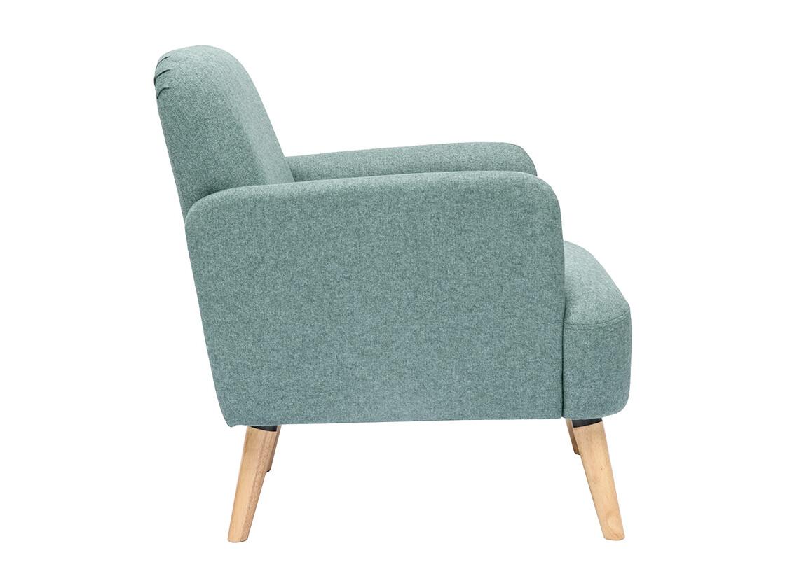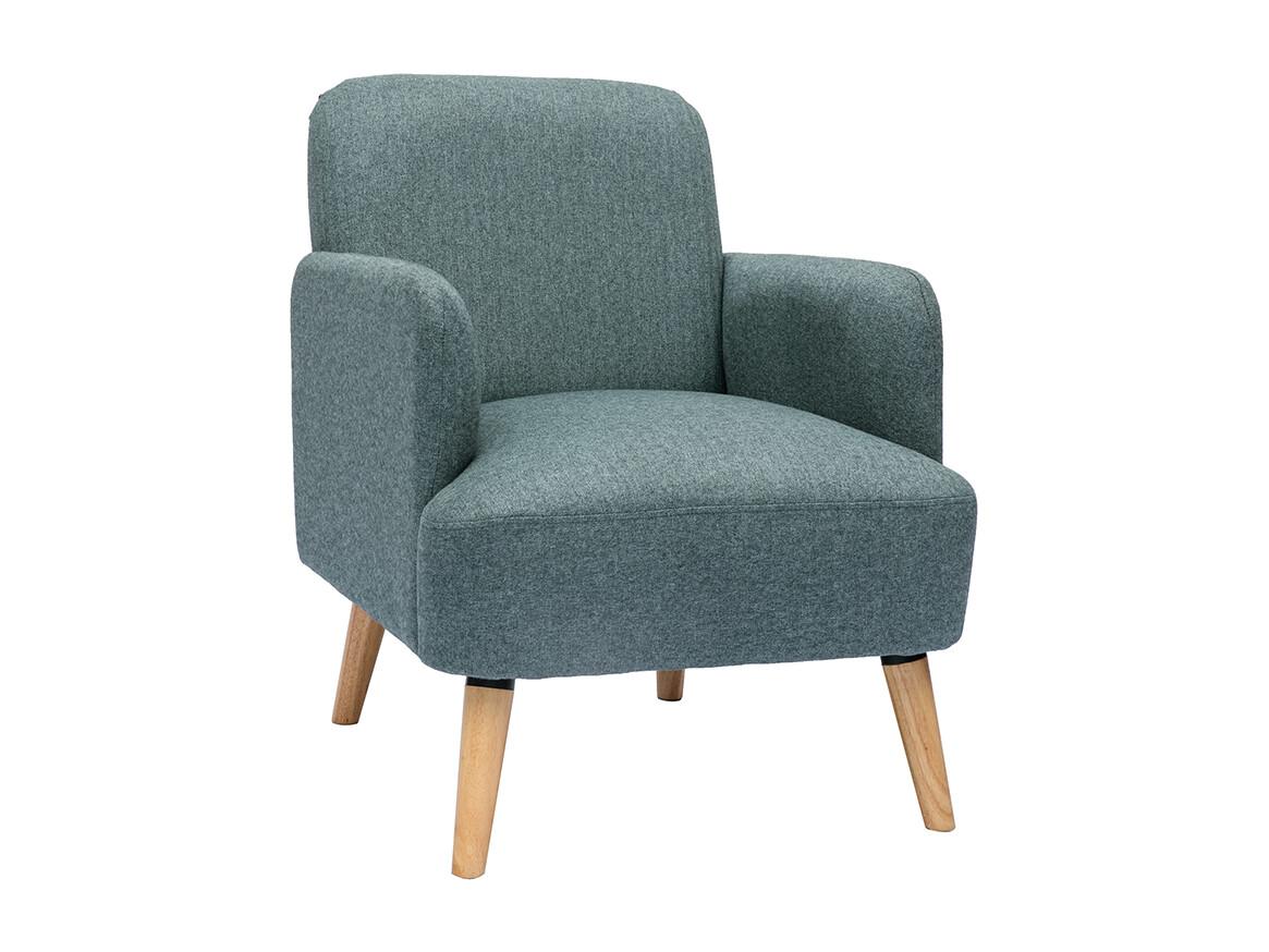 Fauteuil scandinave en tissu vert de gris et bois clair ISKO