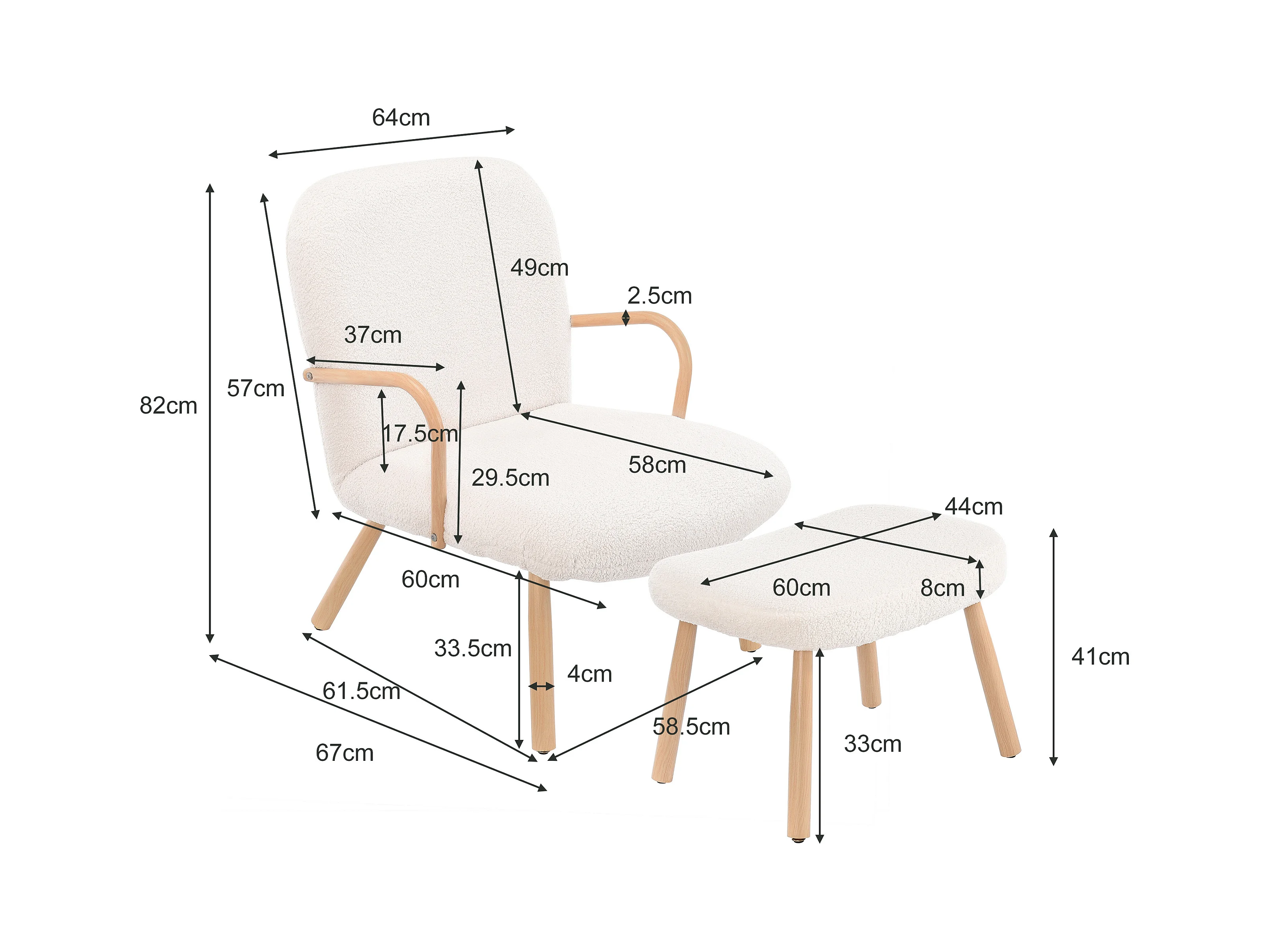 Fauteuil scandinave, revêtement en Imitation Cachemire avec repose-pied, Beige
