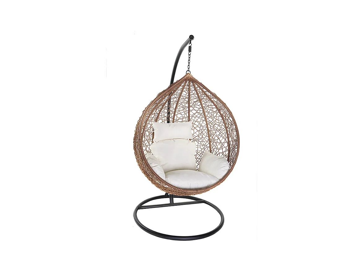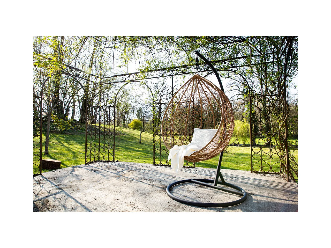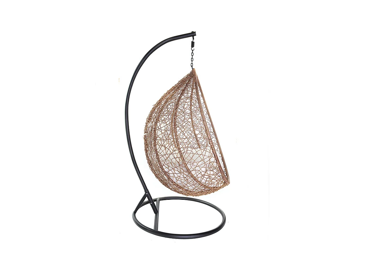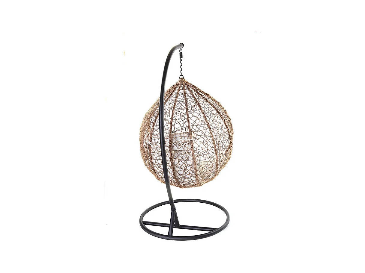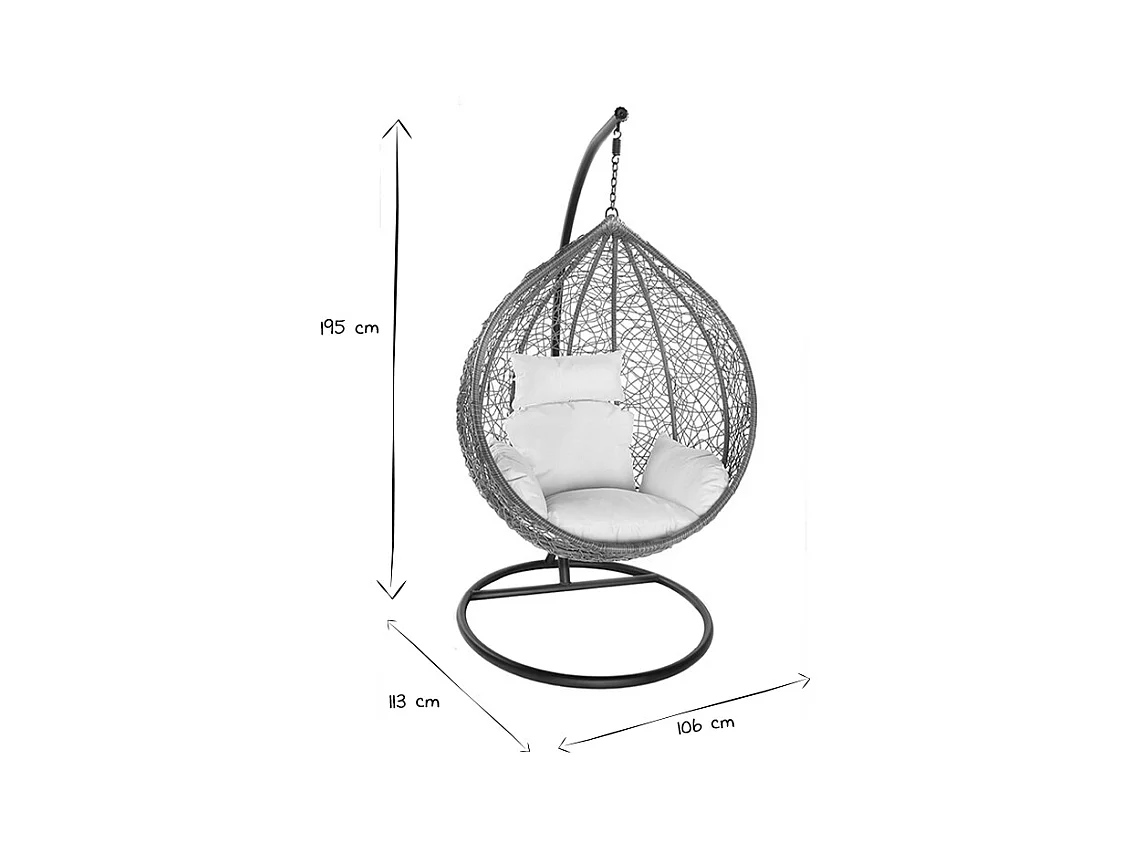 Fauteuil suspendu rotin sur pied en résine et métal noir MOJO