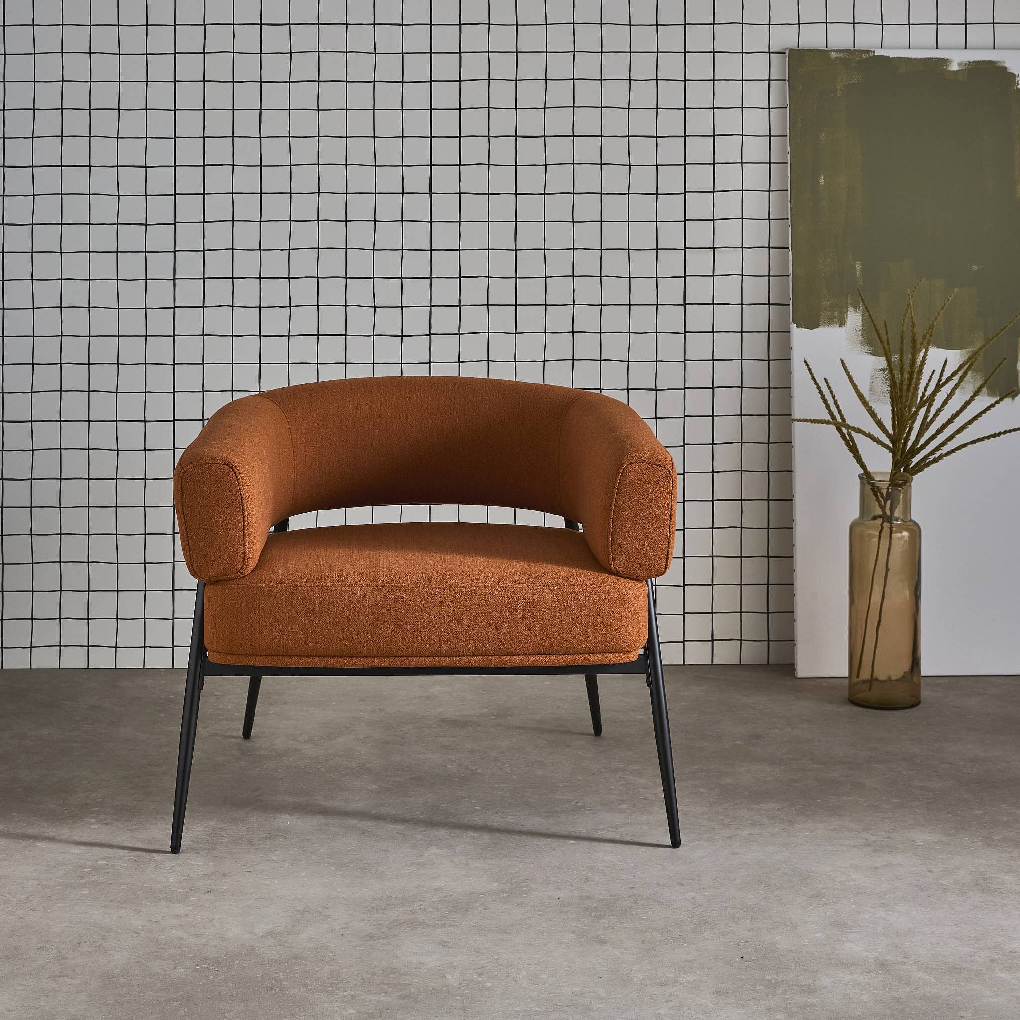 Fauteuil tissu terracotta dossier incurvé piétement métal L 81.5 x P 72.5 x H 69 cm - Cristo