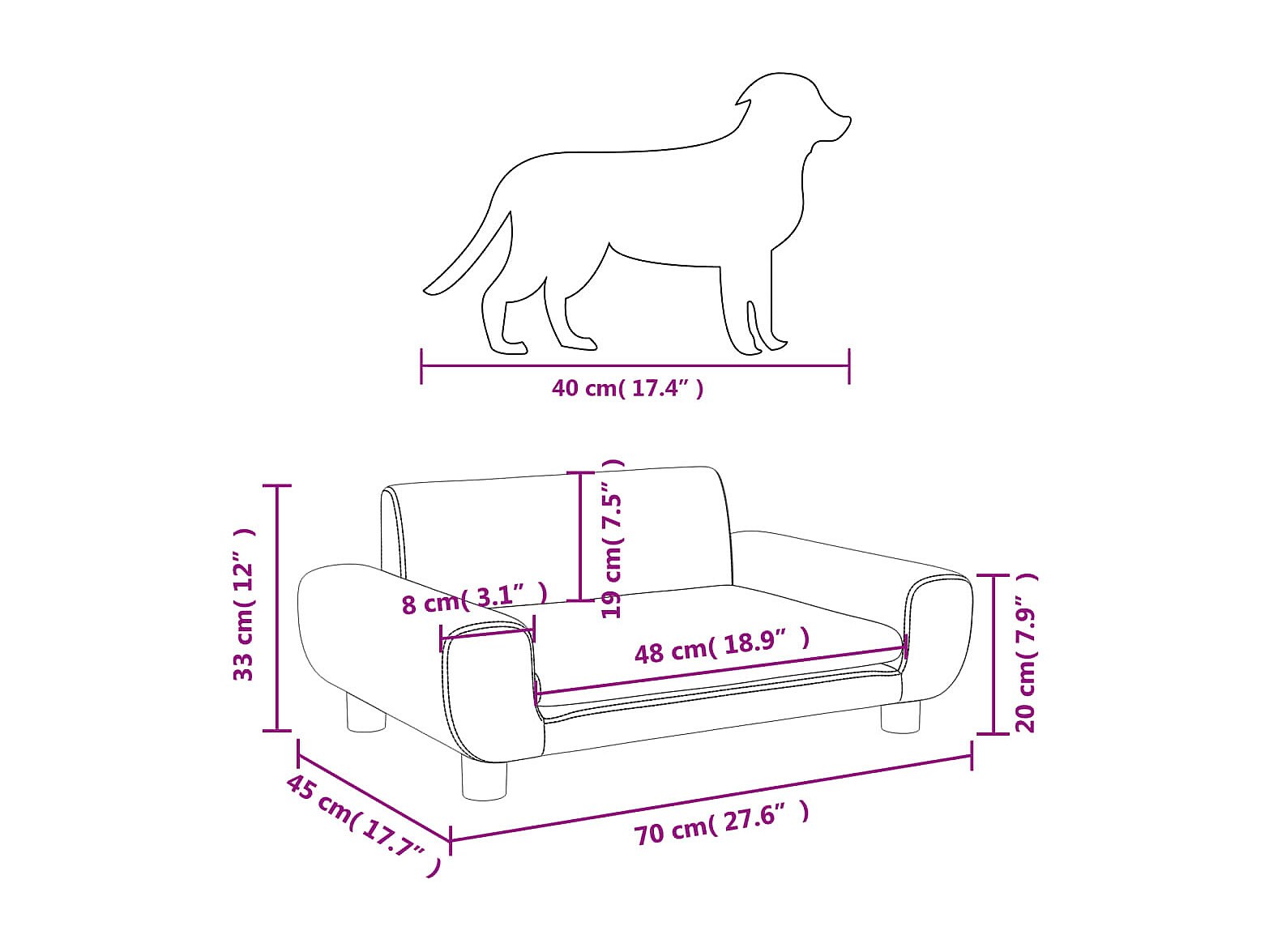 Ware Shoals Lit pour cen rose 66x40x45 cm velours