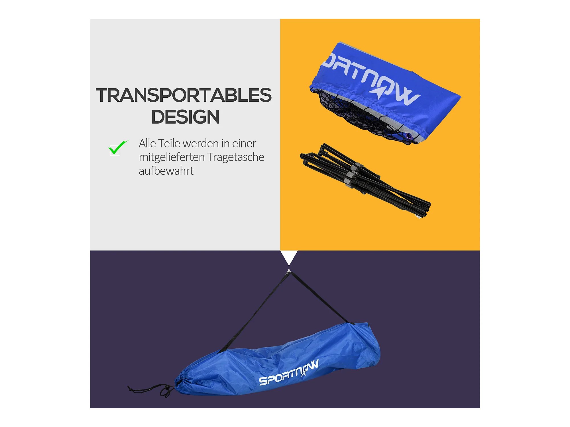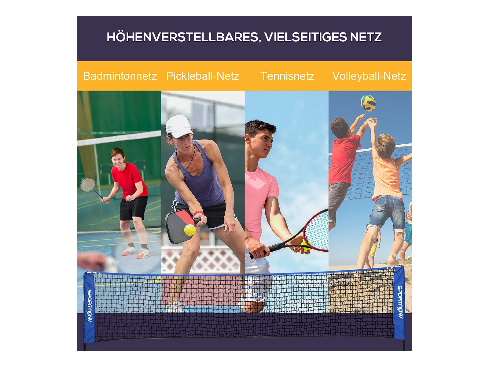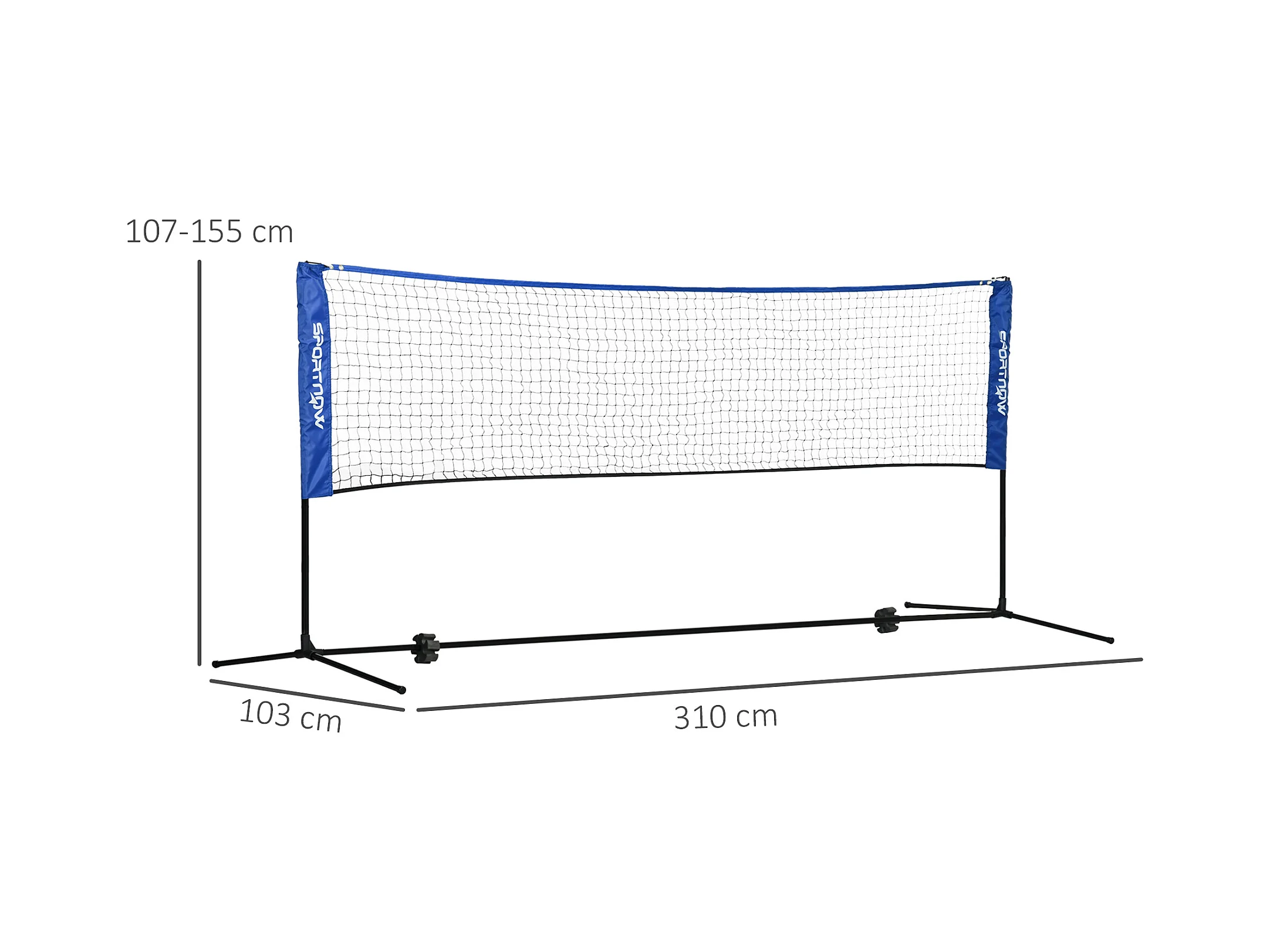 Filet de badminton réglable pliable, métal, bleu (310x103x107-155cm)