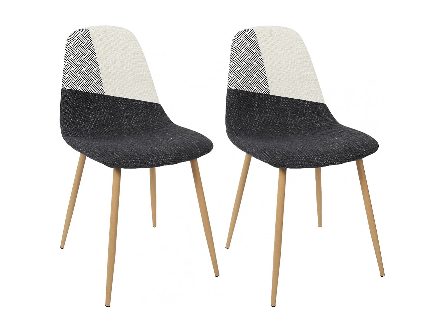 FILLA - Lot de 2 Chaises Noires Blanches et Motif Strié
