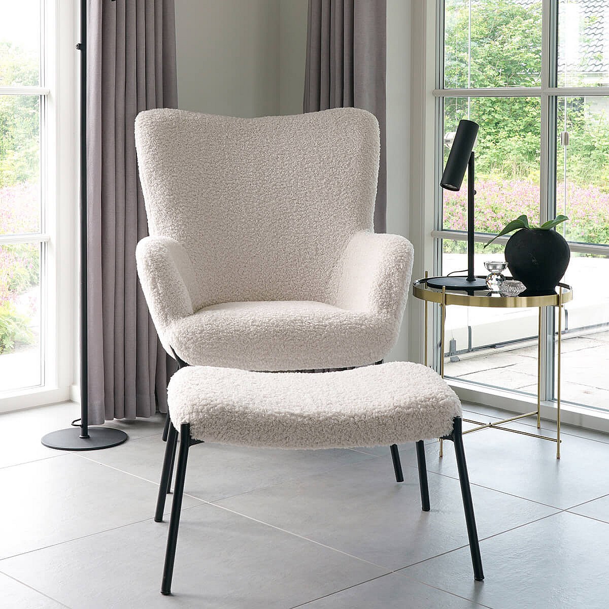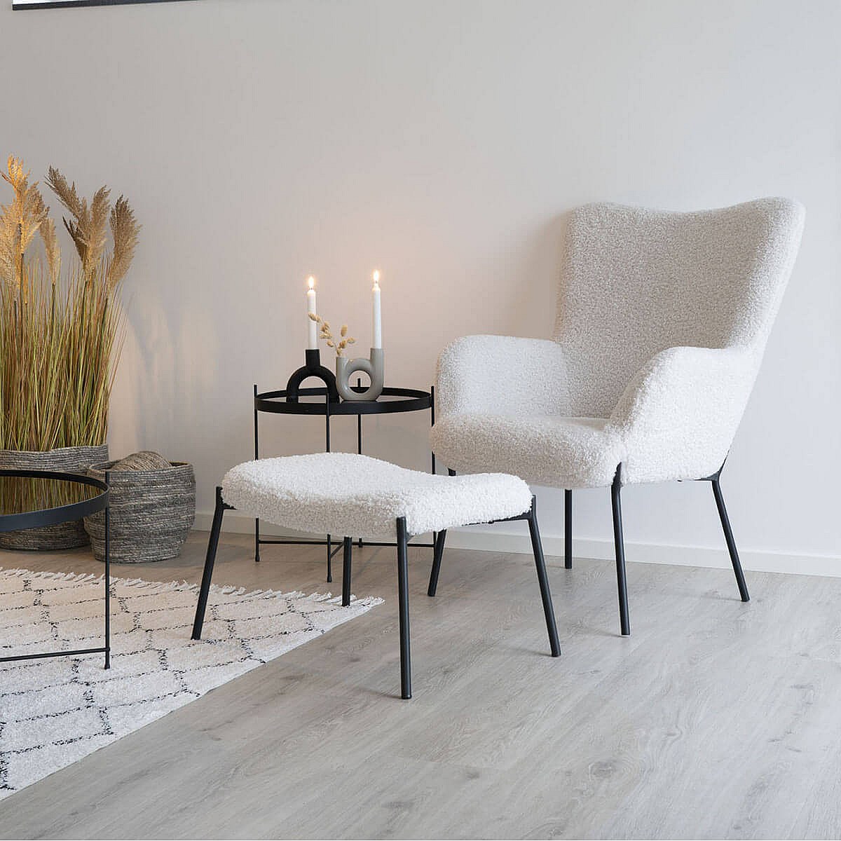 FINTRY - Fauteuil Imitation Laine Blanche et Piétement Acier Noir
