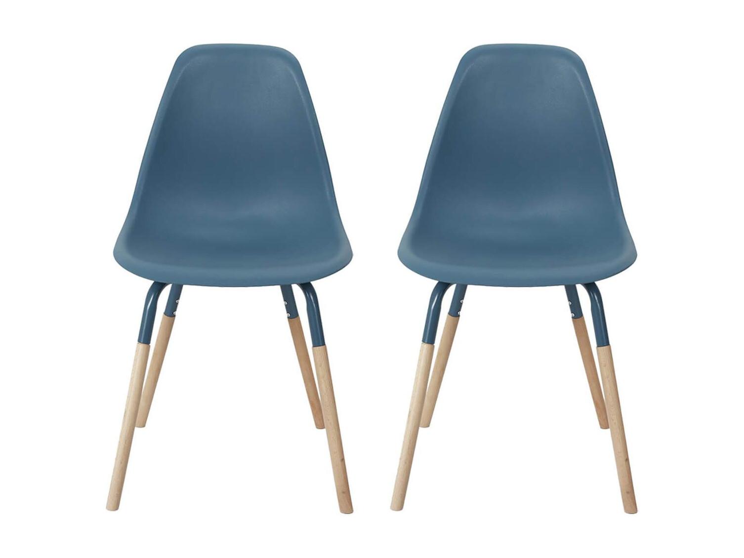 FLUK - Lot de 2 Chaises Polypropylène Bleu et Bois