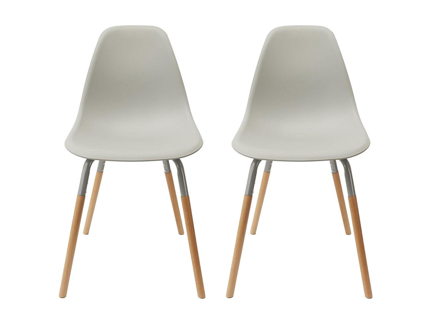 FLUK - Lot de 2 Chaises Polypropylène Gris et Bois