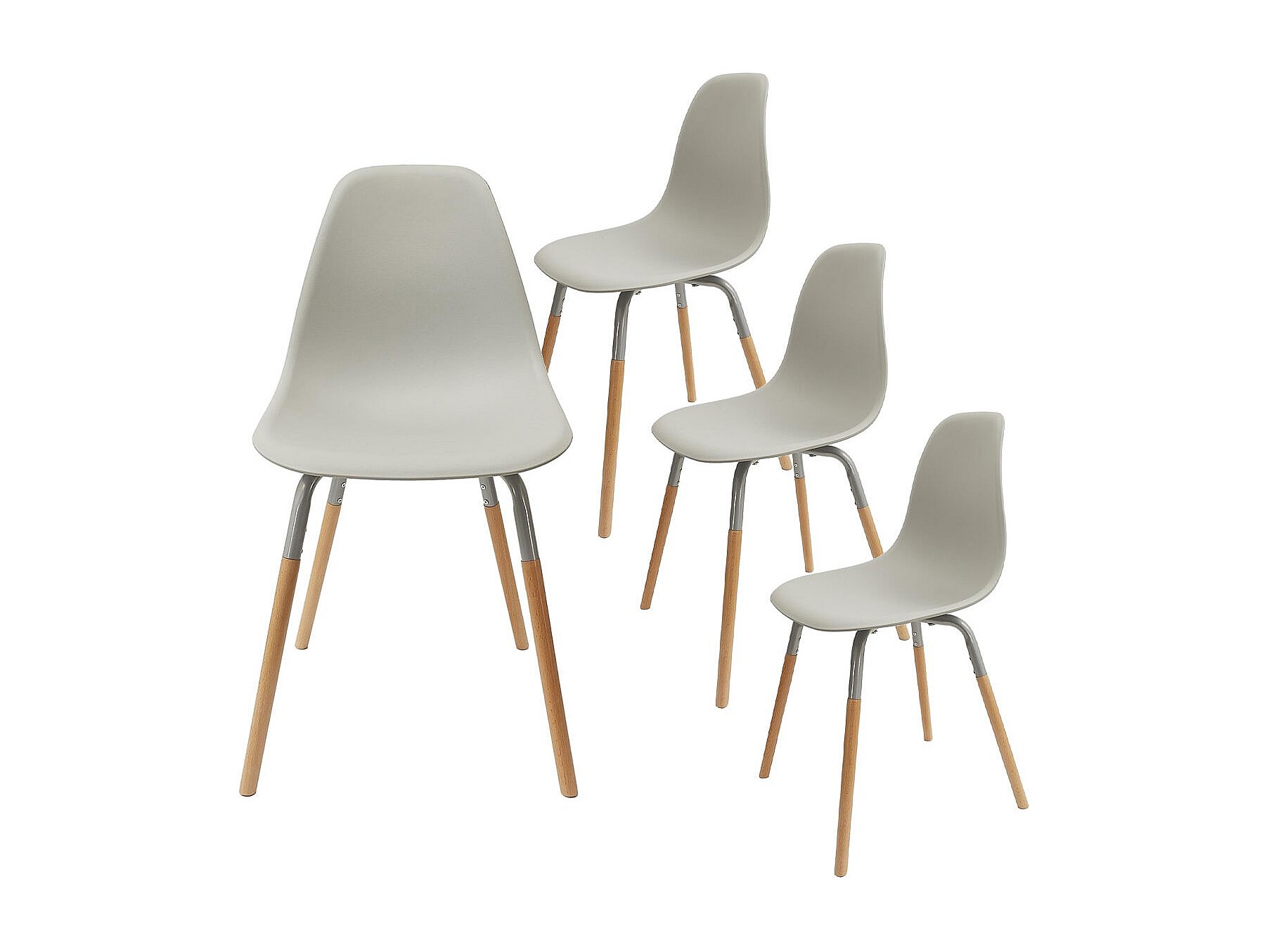 FLUK - Lot de 4 Chaises Polypropylène Gris et Bois