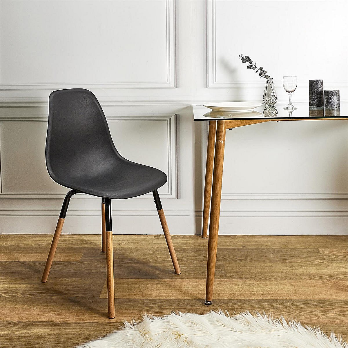 FLUK - Lot de 4 Chaises Polypropylène Noir et Bois