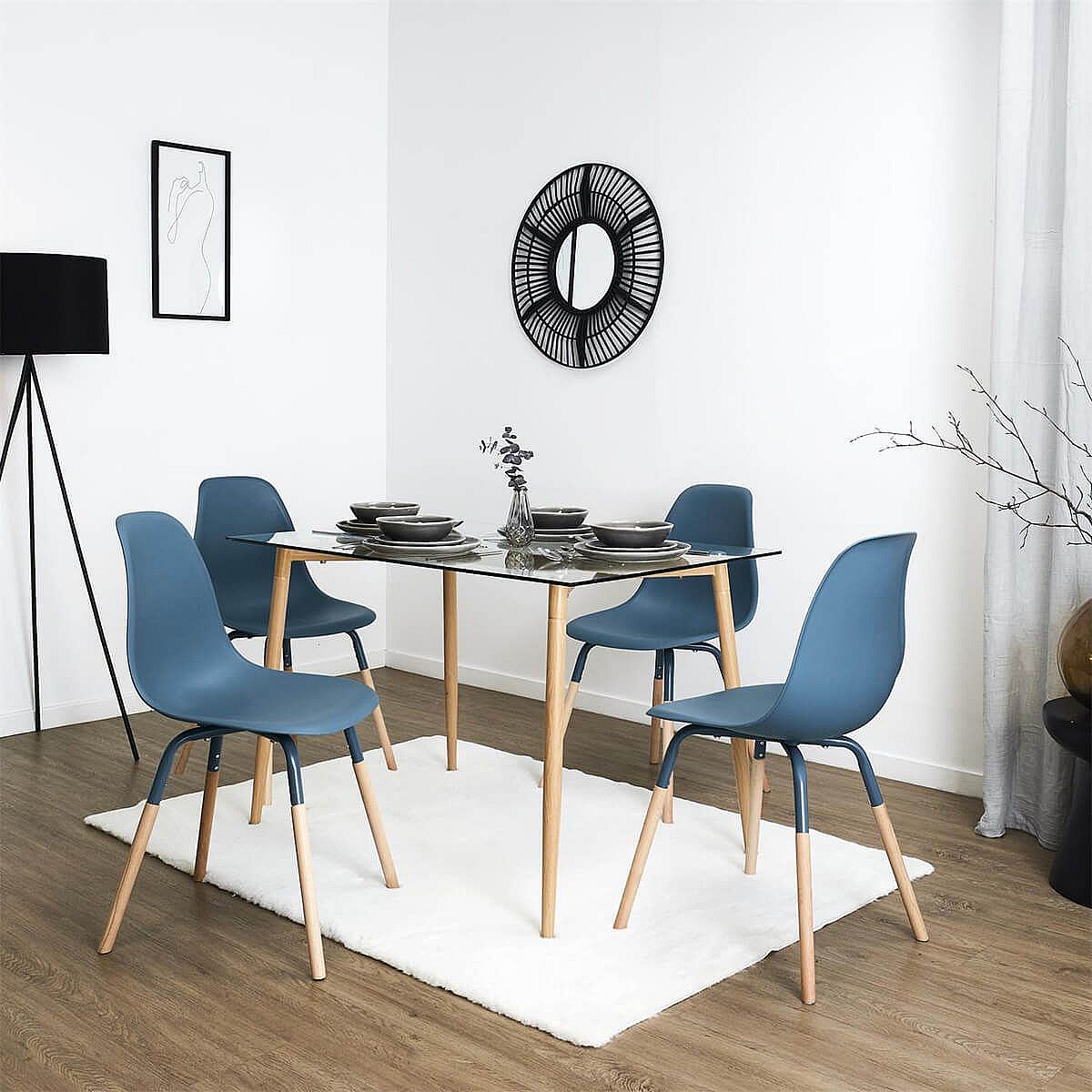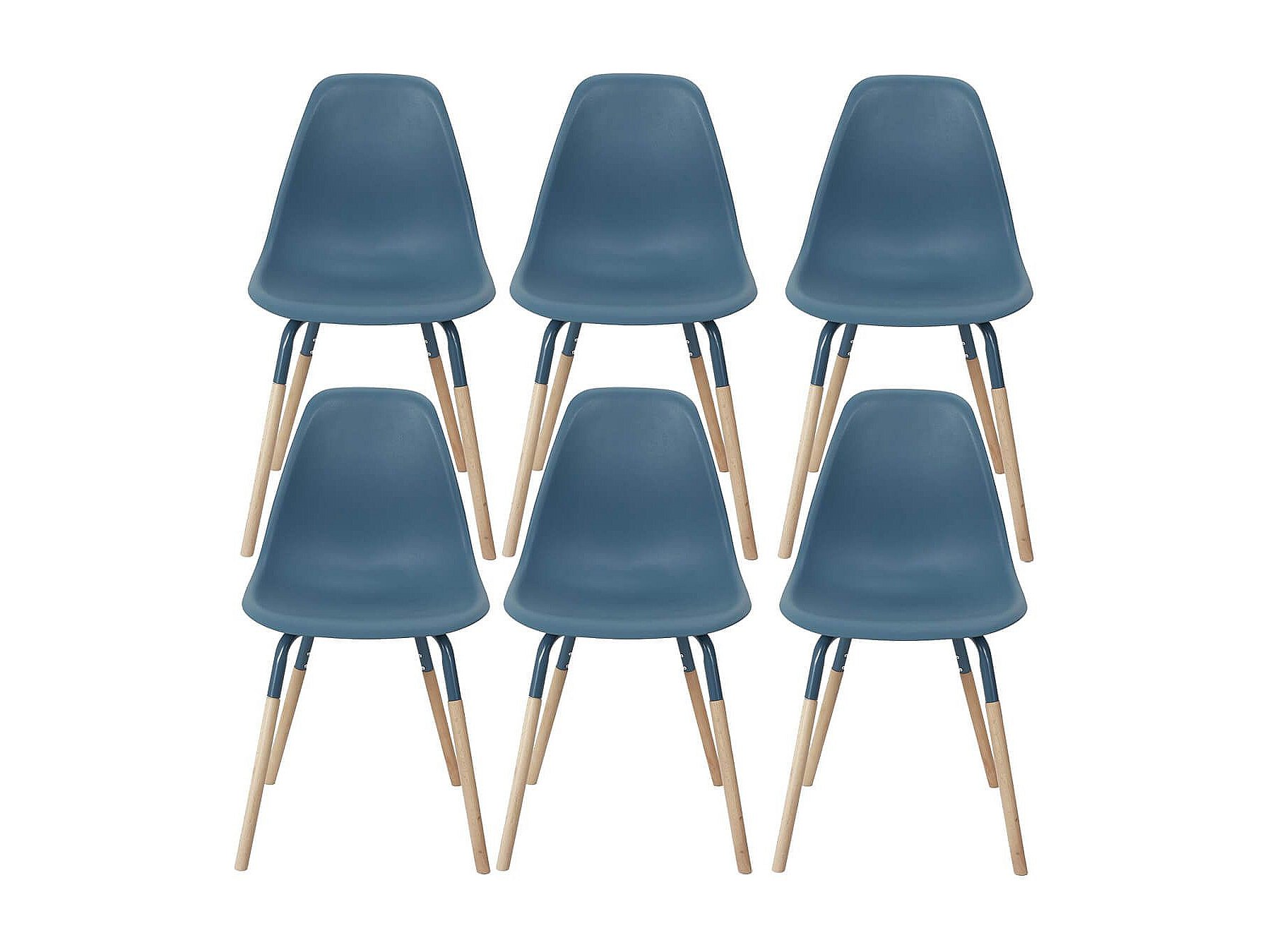 FLUK - Lot de 6 Chaises Polypropylène Bleu et Bois