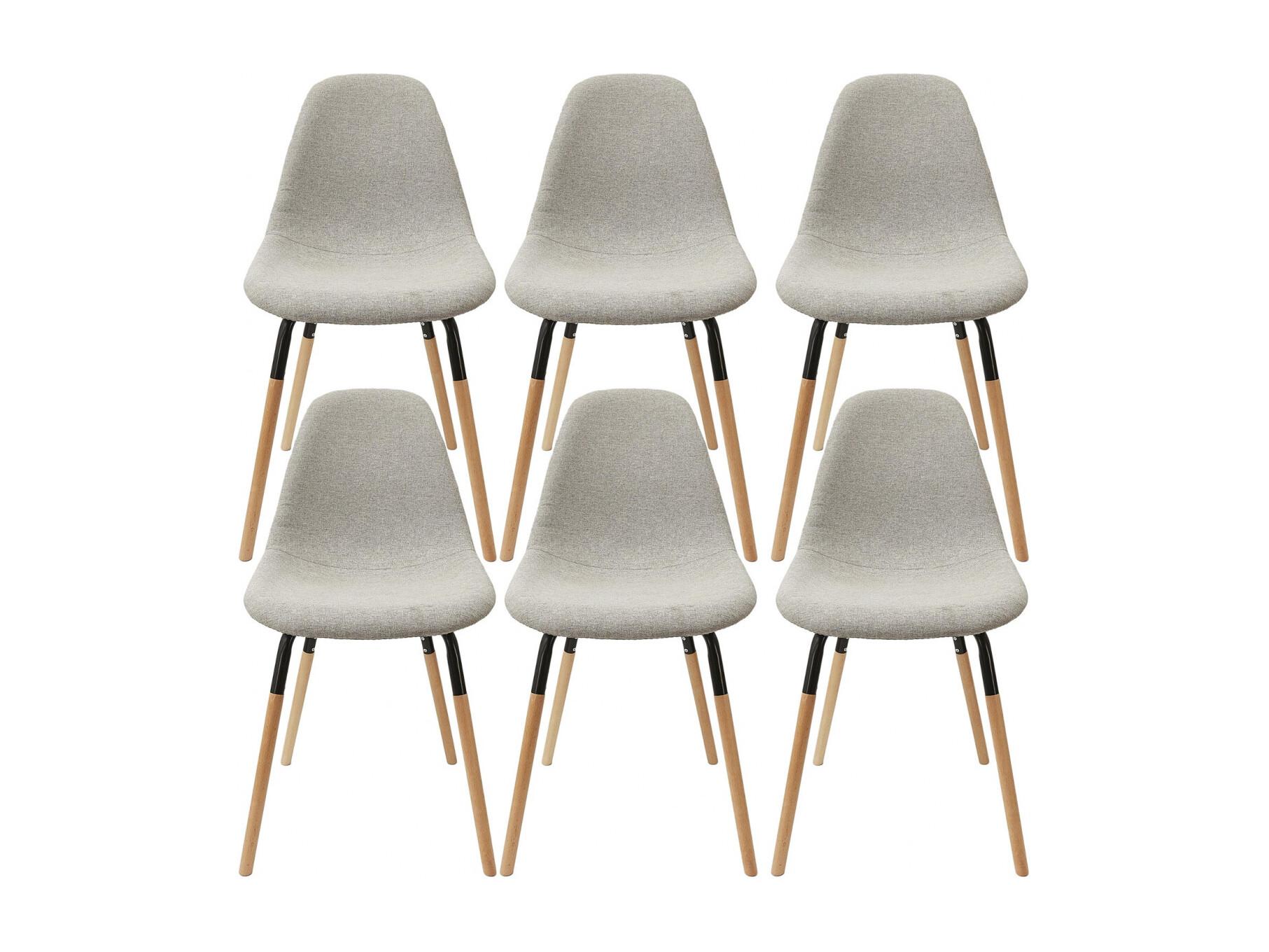 FLUK - Lot de 6 Chaises Tissu Gris Chiné Clair et Bois