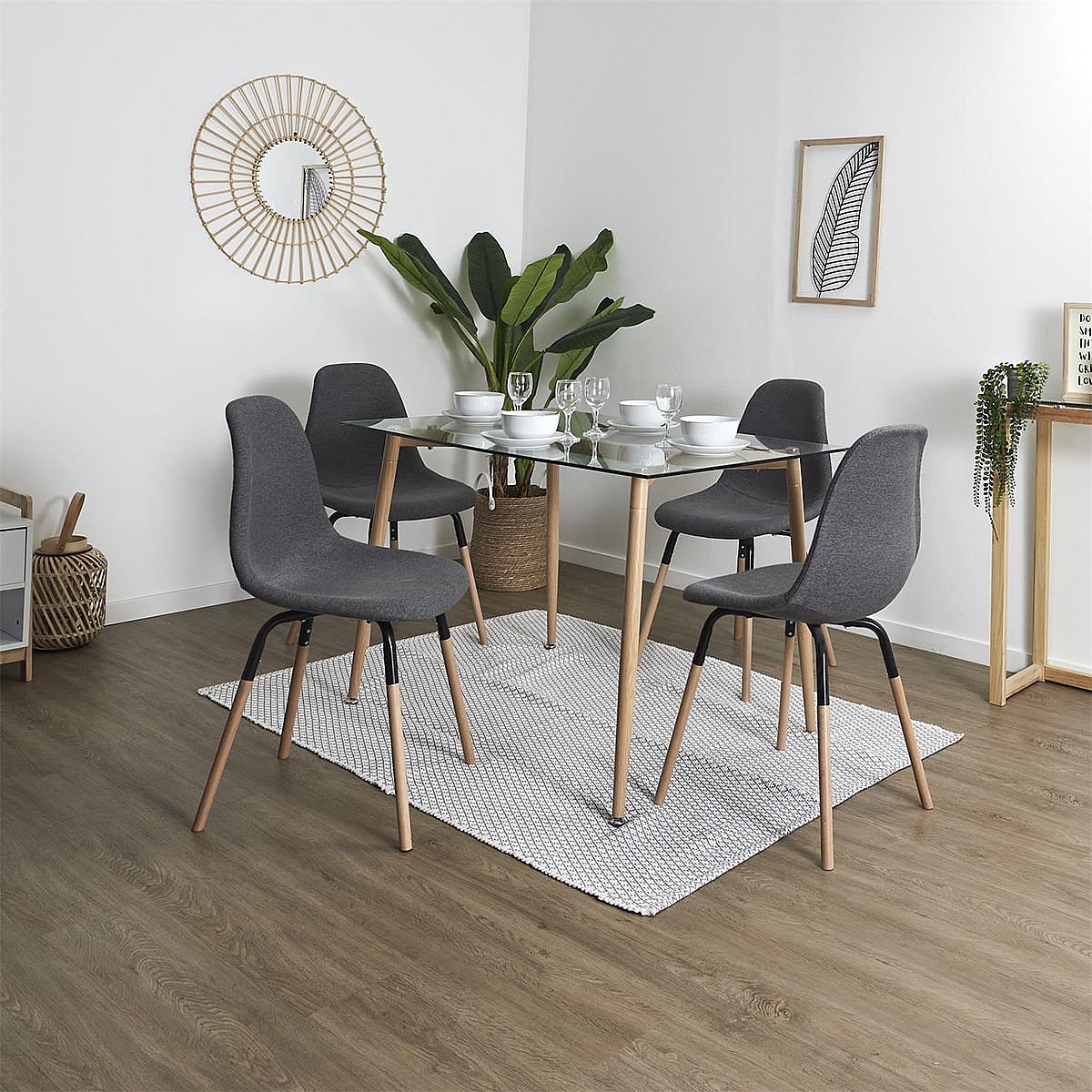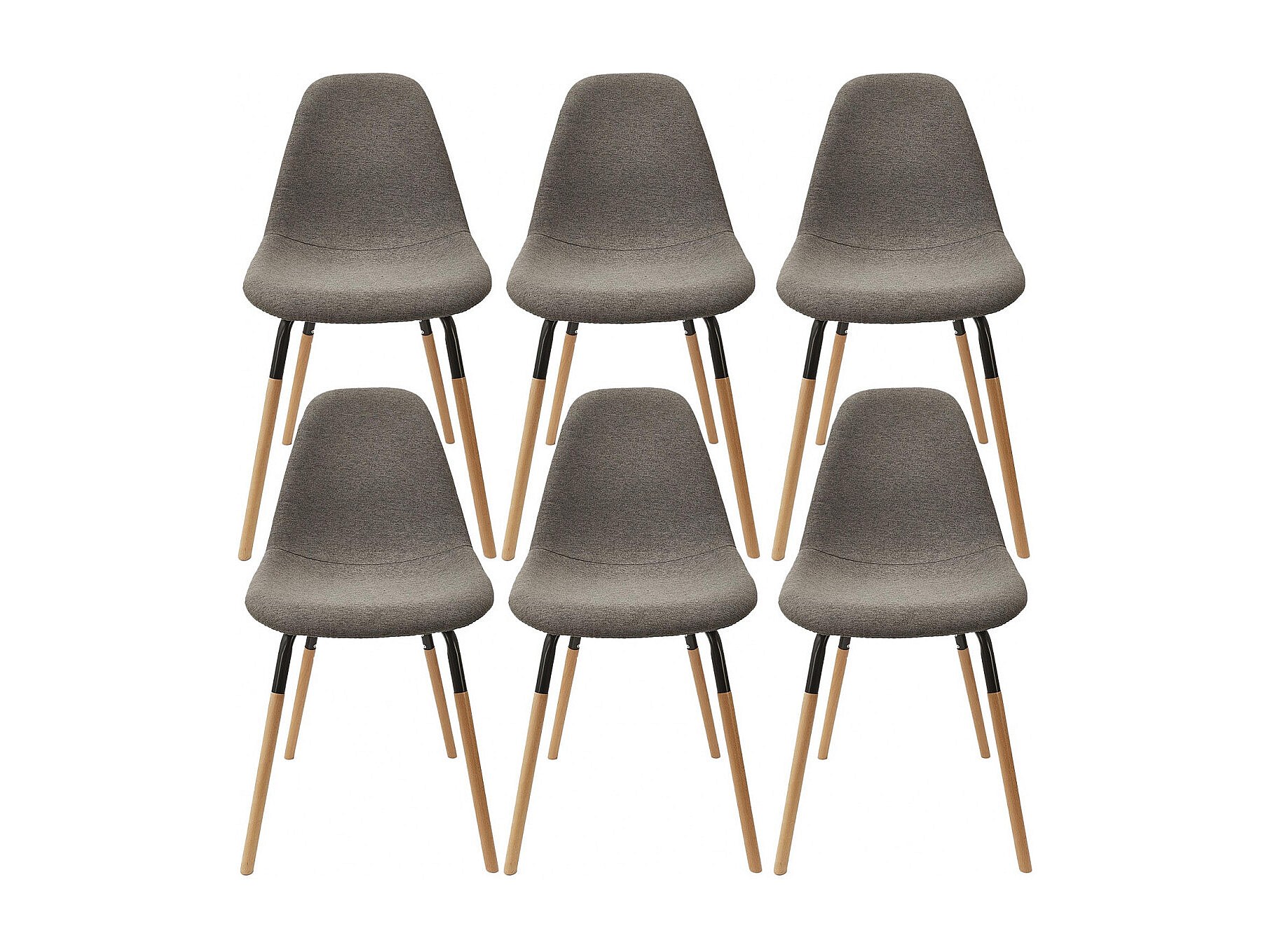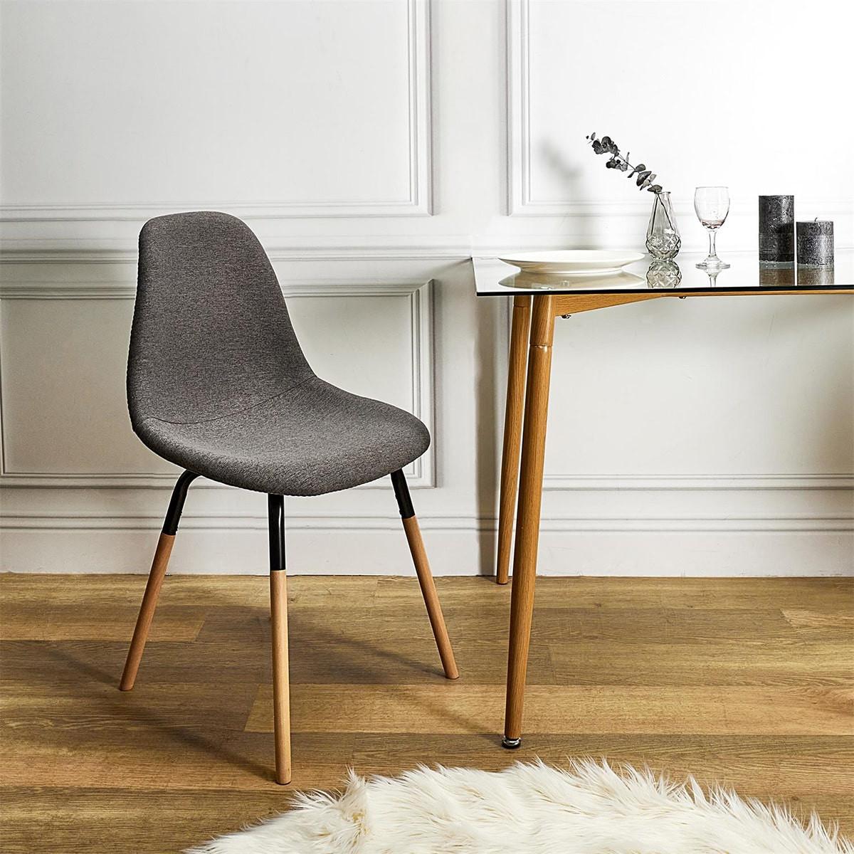 FLUK - Lot de 6 Chaises Tissu Gris Chiné Foncé et Bois