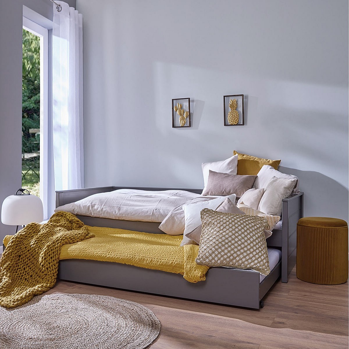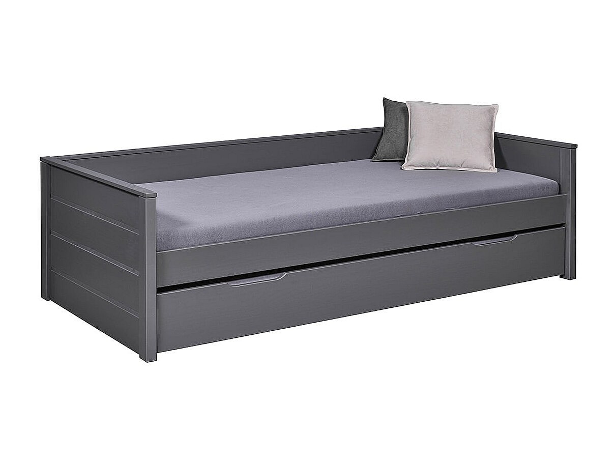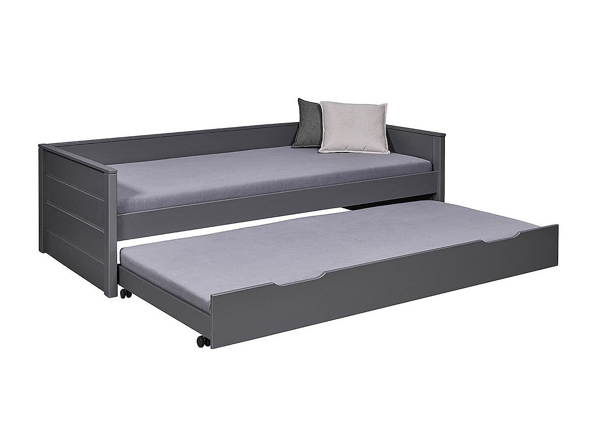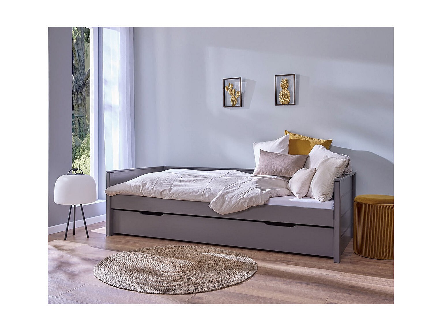 FOGGY - Lit Gigogne 90x200cm en Pin Massif Teinté Gris