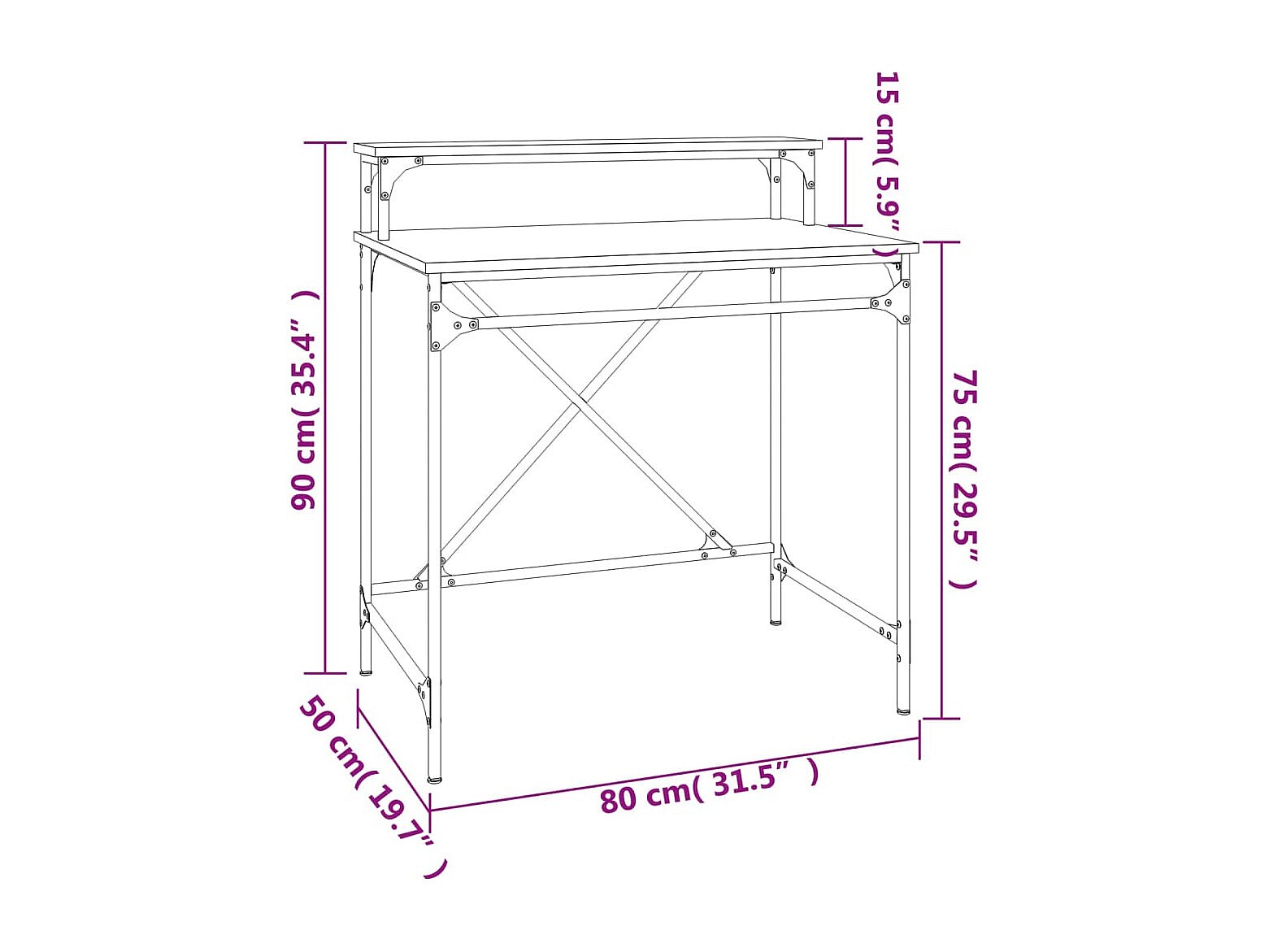 Fole Bureau sonoma gris 80x50x90 cm bois d'ingénierie et fer
