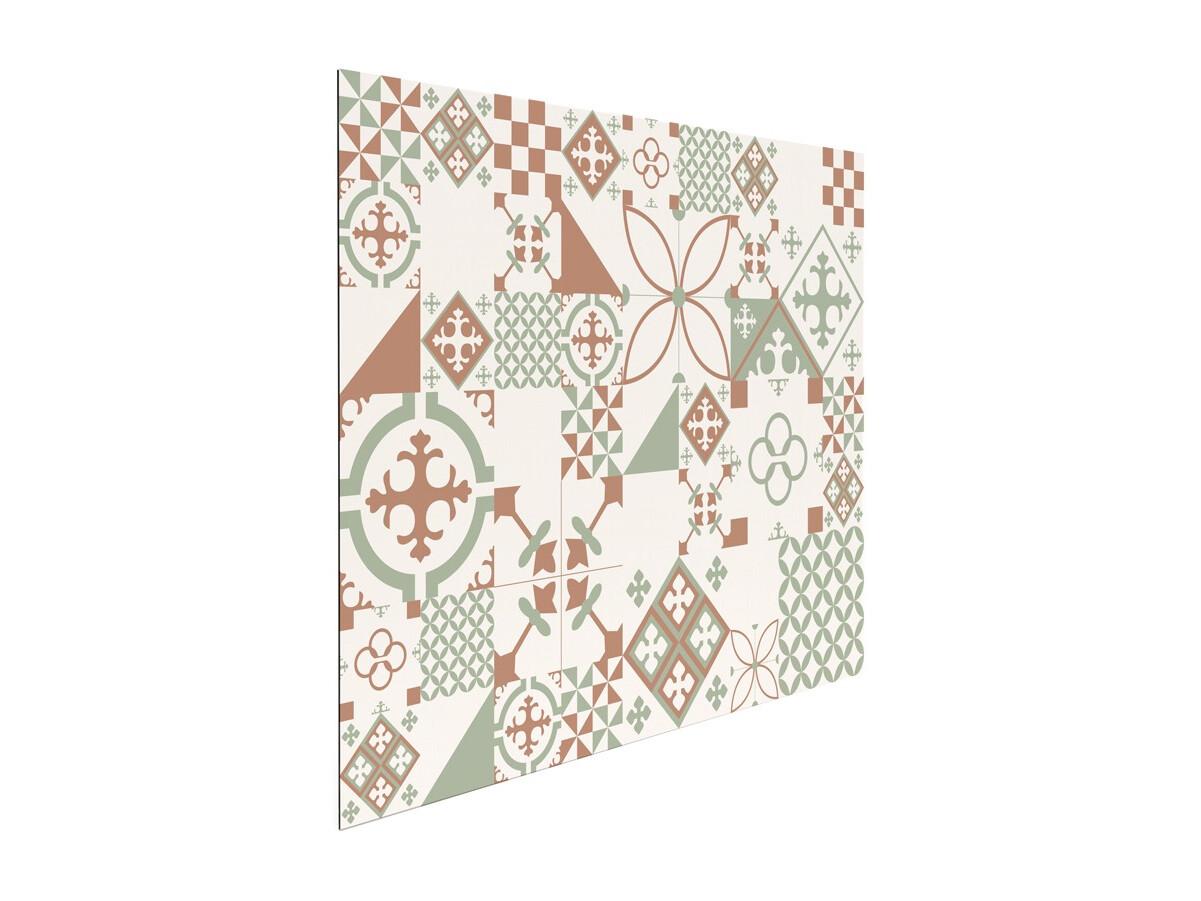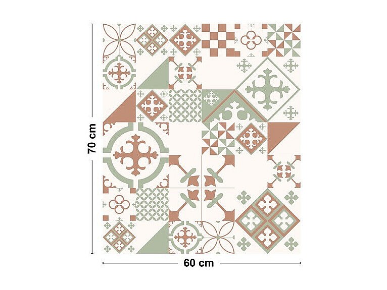 Fond de hotte adhésif en aluminium effet carreaux de ciment vert - 70x60 cm