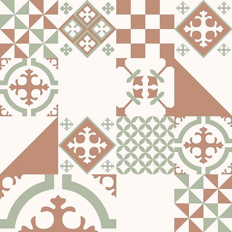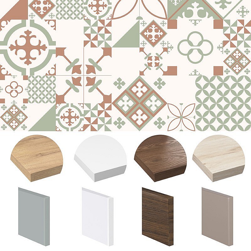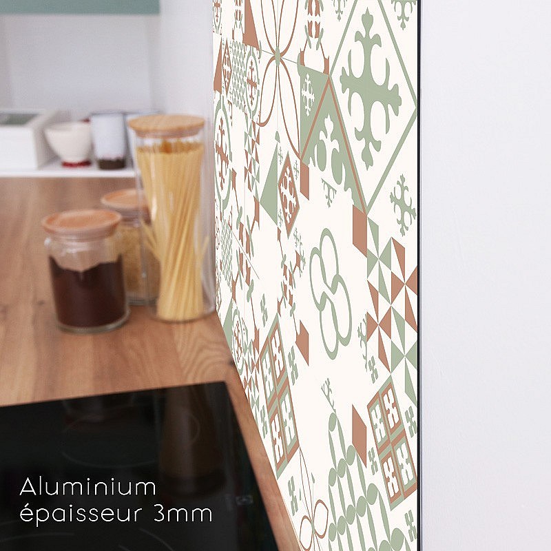 Crédence cuisine adhésive en aluminium effet carreaux de ciment marron et vert 240x45 cm (en 2 bandeaux)