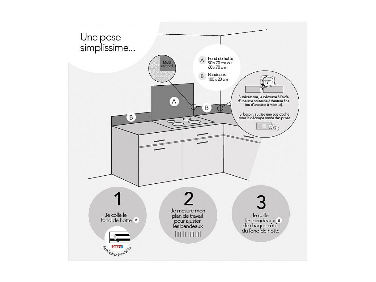 Fond de hotte adhésif en aluminium floral noir - 70x60 cm