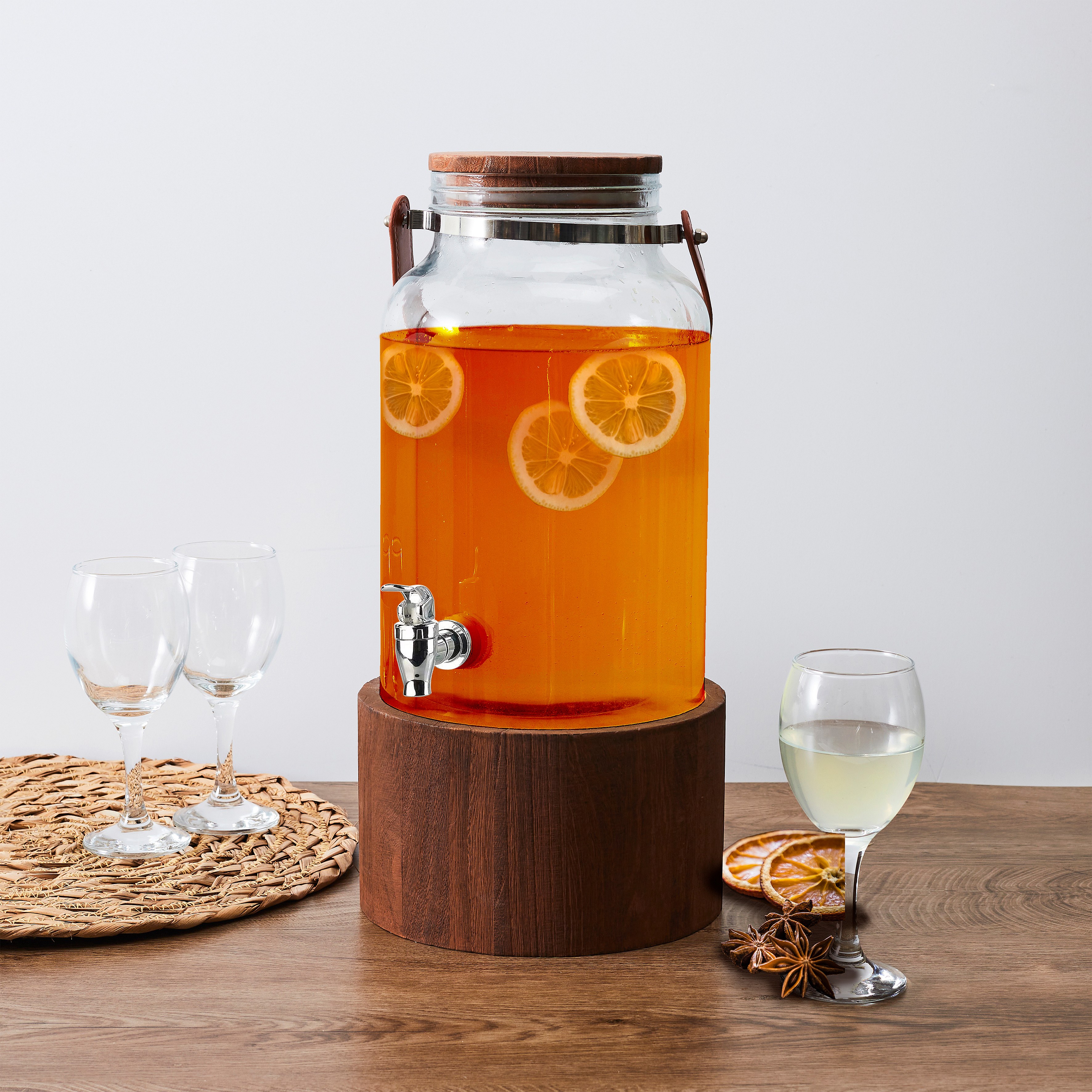 Fontaine 6l Support Bois Et Anse Transparent, Marron