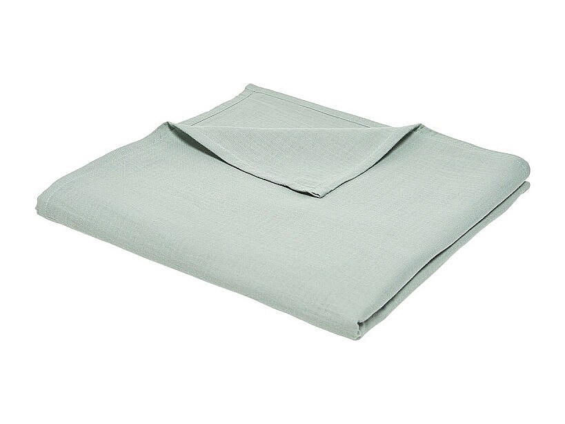 Édredon 90 x 200 cm gaze de coton bleu canard avec 4 pompons - PEPA