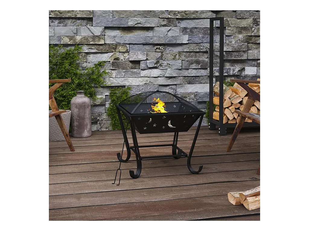 Foyer avec tisonnier 79x79x46,5 cm XXL acier