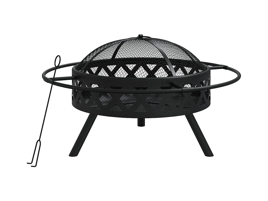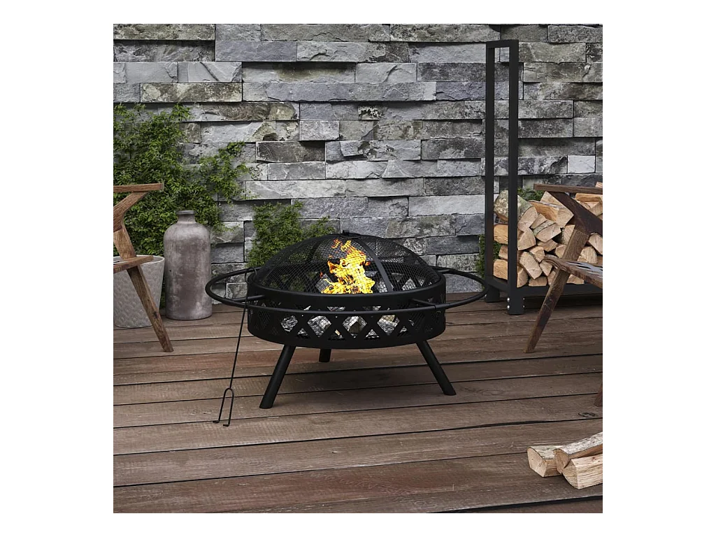Bol à feu basero acier noir avec 3 pieds pliables foyer grille barbecue Ø80x29cm