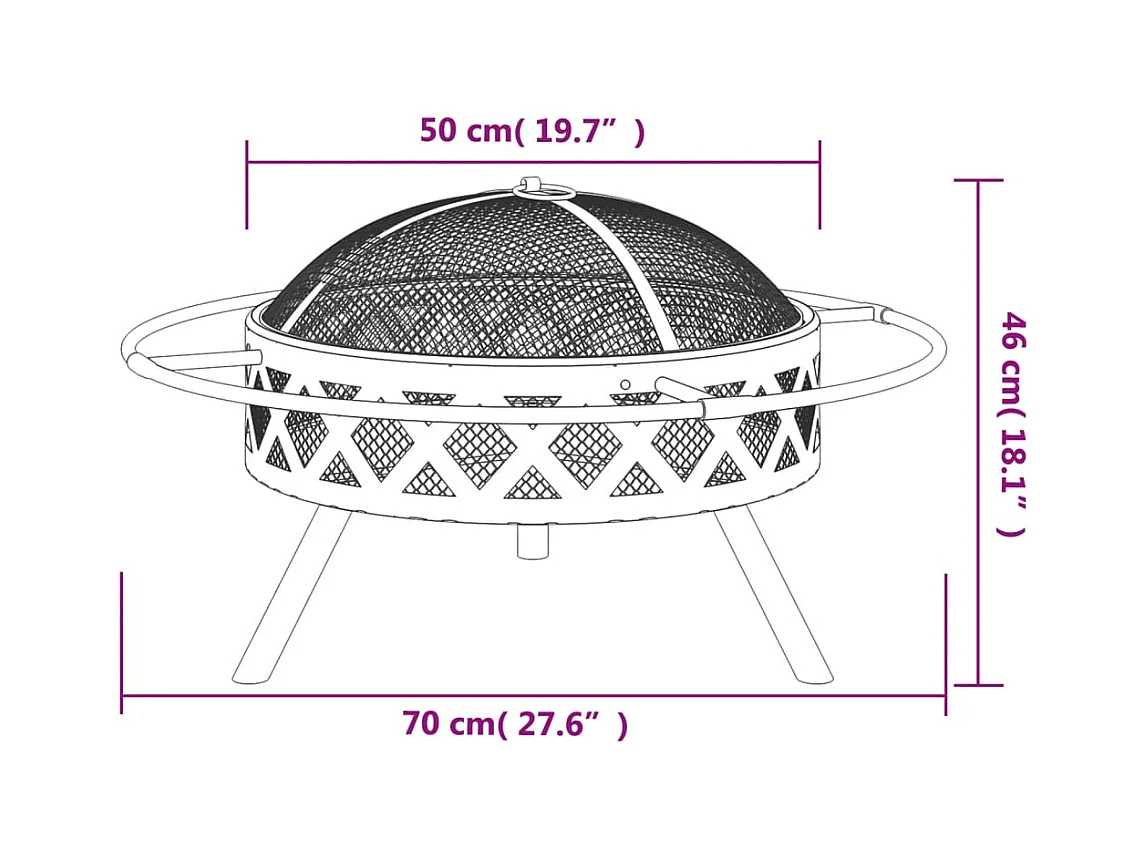 Bol à feu basero acier noir avec 3 pieds pliables foyer grille barbecue Ø70x27cm