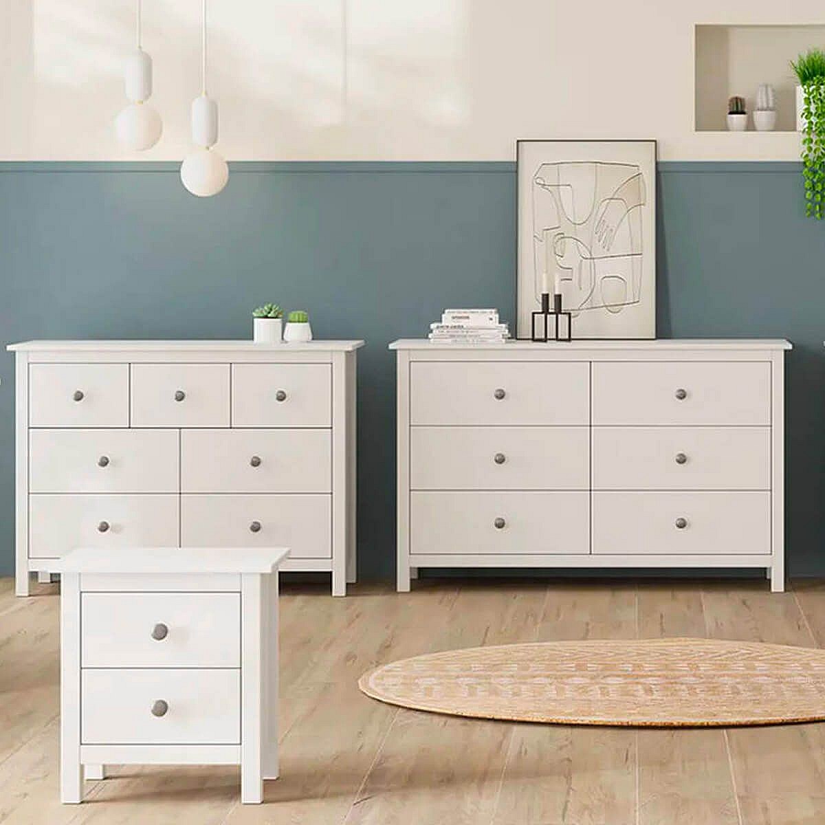 LAUPELL - Chevet Scandinave 3 Tiroirs Pin Massif Naturel et Blanc