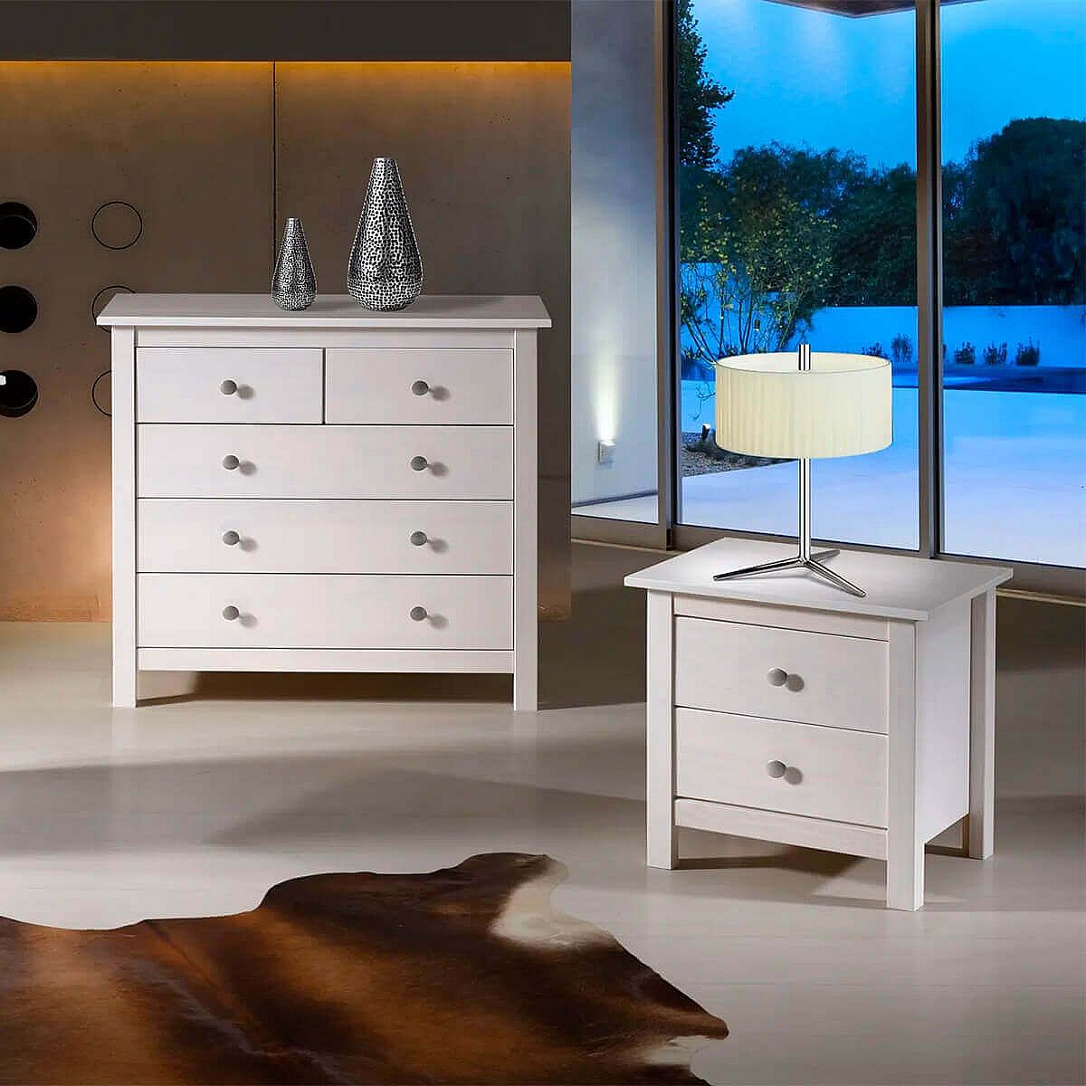 FRED - Chevet 2 Tiroirs Bois Massif Coloris Blanc