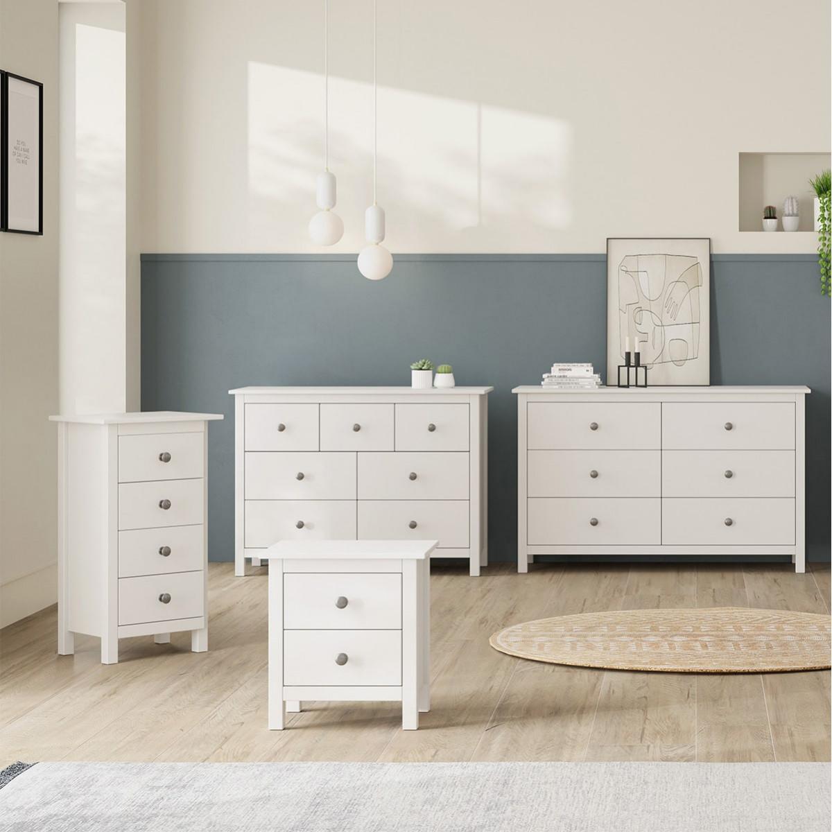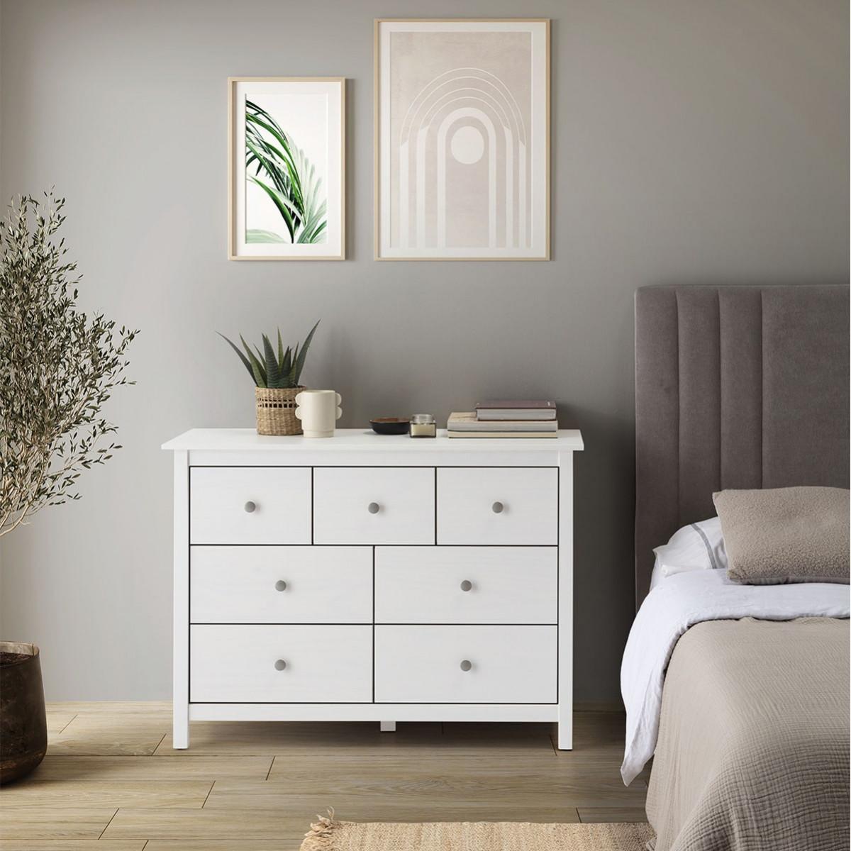 FRED - Commode 7 Tiroirs Bois Massif Coloris Blanc