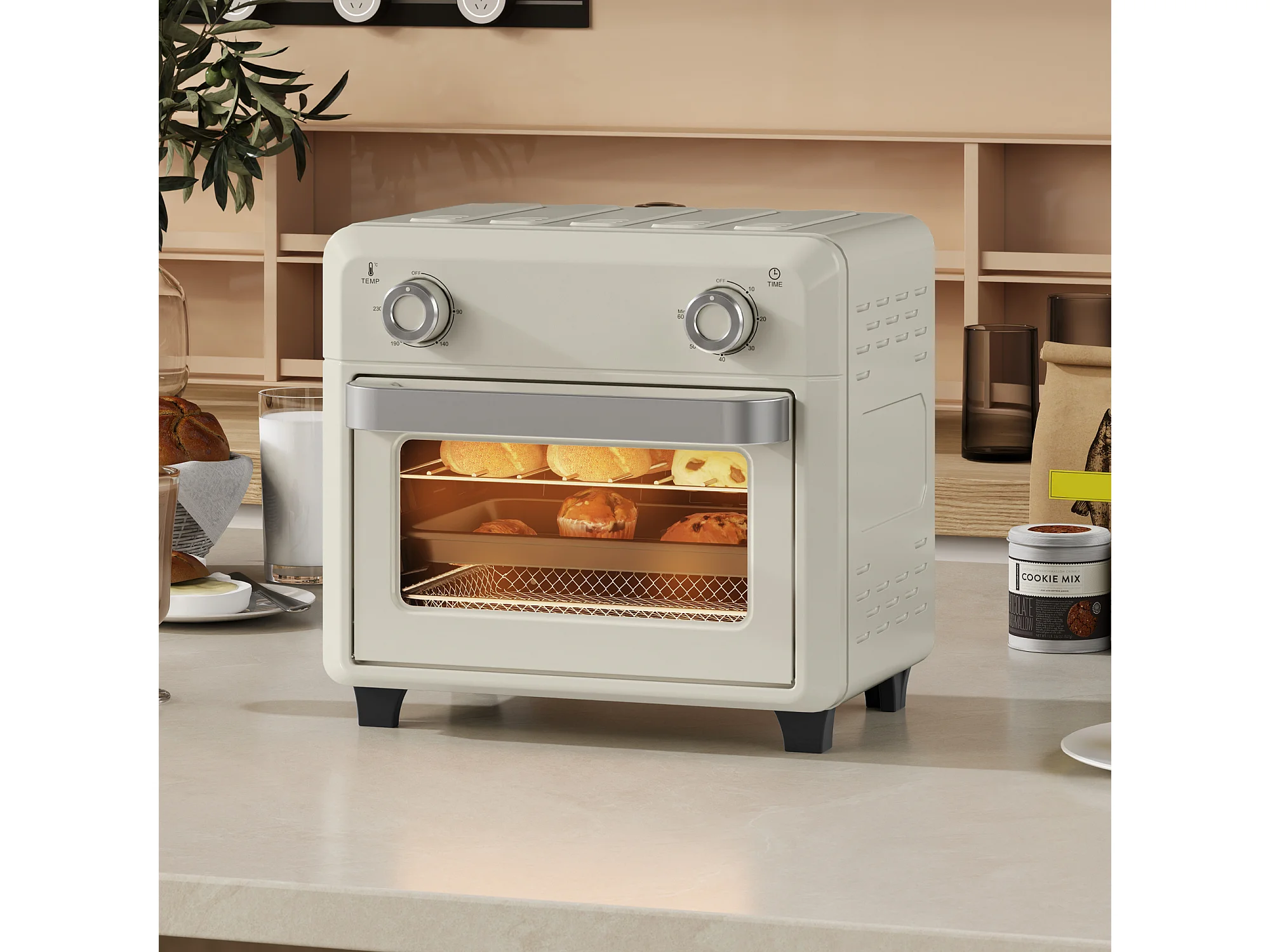 Friteuse à air mini four 1 000W 10L 80°C-230°C timer 5 accessoires inclus crème