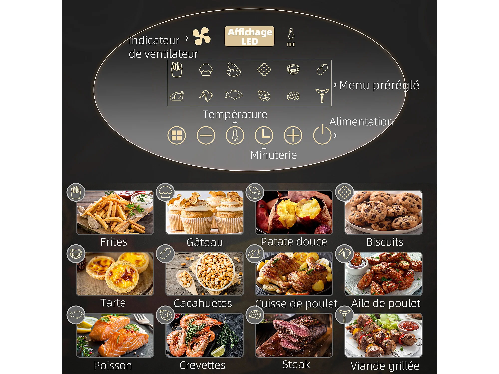 Friteuse sans Huile 4L HOMCOM 1300W 12 Programmes - Écran Tactile - Température Réglable - Noir