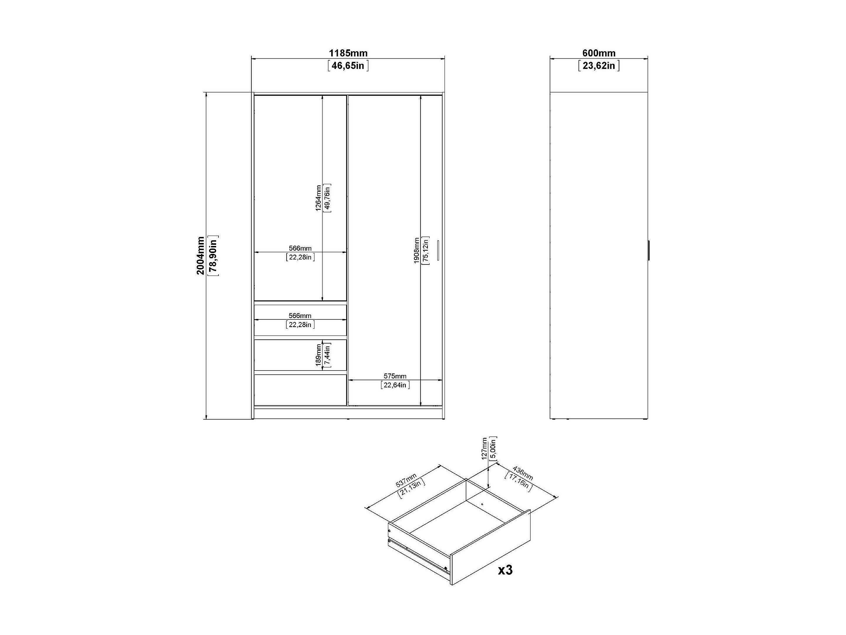 Garde-robe 2 portes Dscalvin, Meubles de chambre, Penderie de plain-pied, Placard à vêtements, 119x60 h200 cm, Chêne clair
