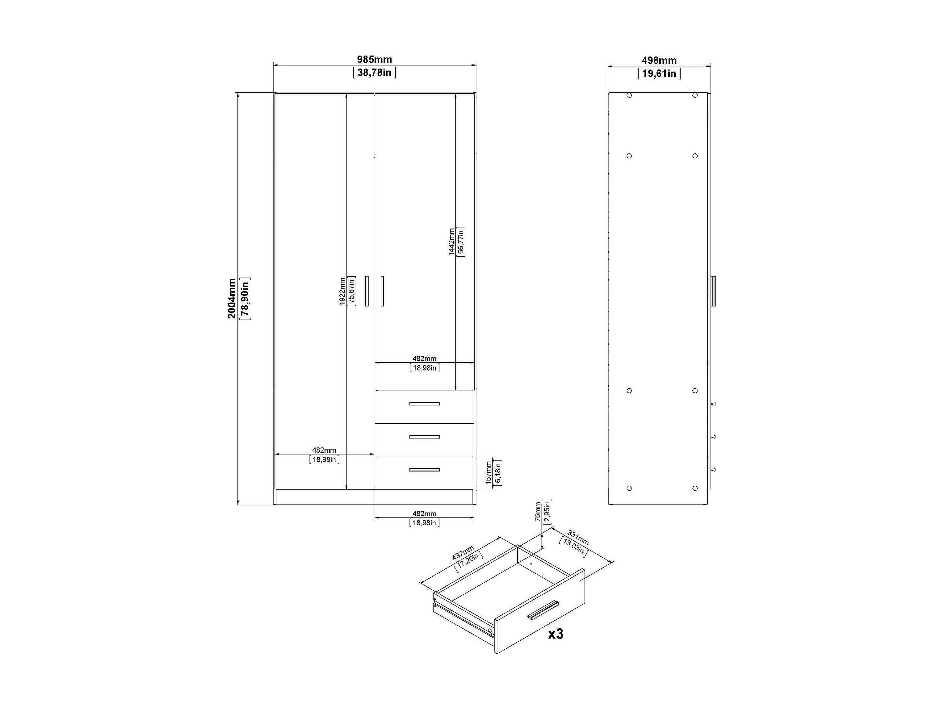 Garde-robe 2 portes Dscopon, Meubles de chambre, Penderie de plain-pied, Placard à vêtements, 99x50 h200 cm, Chêne clair