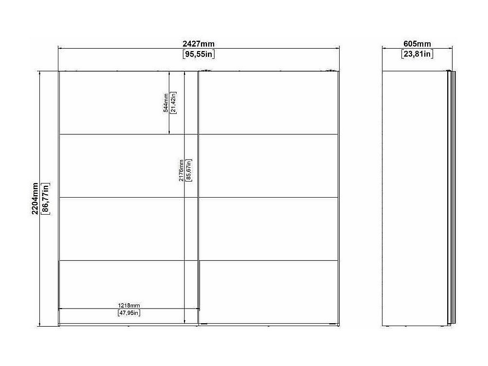 Garde-robe 2 portes Dspinos, Meubles de chambre, Penderie de plain-pied, Placard à vêtements, 243x61 h220 cm, Blanc et Noir